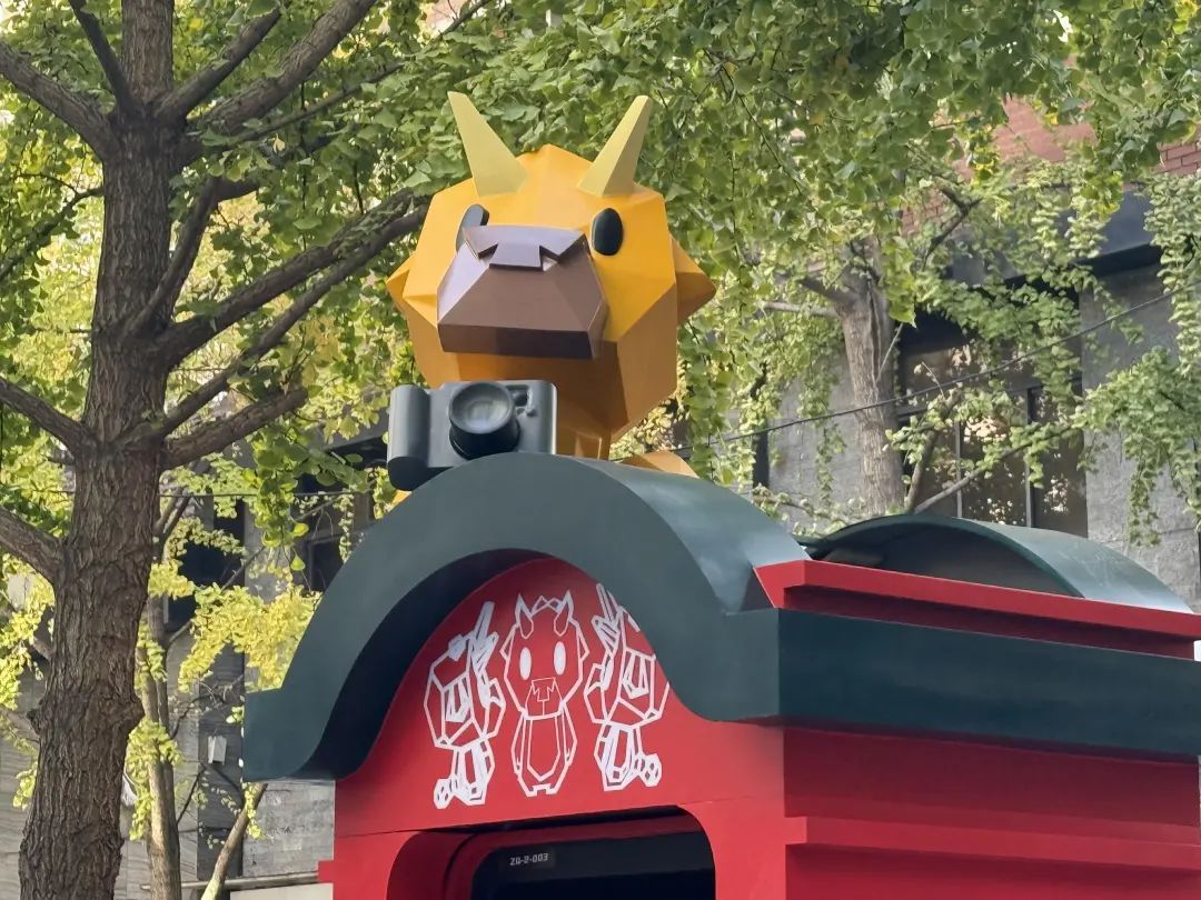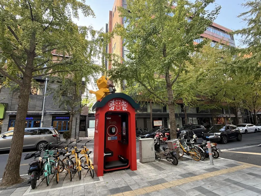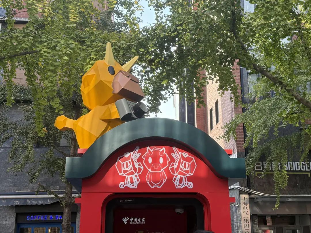 缤纷落叶缓缓飘落,局门路上的这处“公共电话亭”外形非常有趣,在鲜艳的红色亭身顶部,有一只黄色的“黄小牛”,只见它手持照相机,正在拍摄局门路的秋景。路过的市民都在议论,这只“黄小牛”究竟是什么?有哪些含义?
