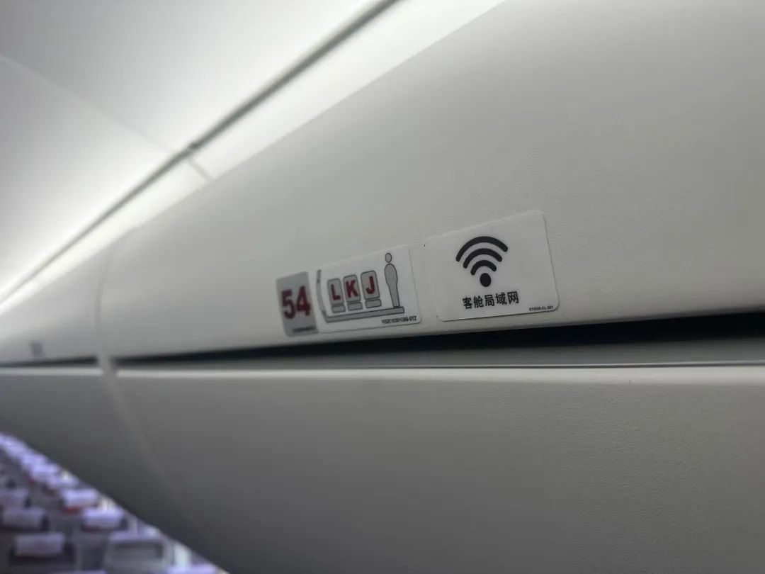 在这架C919上,旅客会看到每个座椅都各有一个“客舱局域网”提示标签。
