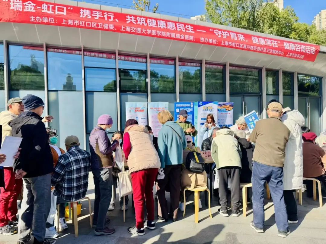 11月28日上午,由虹口区卫健委、上海交通大学医学院附属瑞金医院主办,嘉兴路街道社区卫生服务中心协办的“守护胃来、健康常在”健康咨询活动在和平公园下沉式广场举行。
