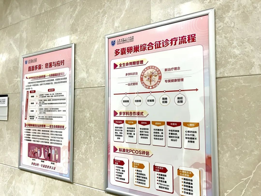 “我已经有一年的时间没有来月经了,自己心里还是有些担心的……一开始我也不太清楚是要来妇产科还是内分泌科检查,总是怕跑‘冤枉路’。但自从来了十院虬江路院区的多囊卵巢综合征门诊,心里踏实多了。” 近日,在上海十院(虬江路院区)多囊卵巢综合征门诊诊室,记者见到了正在就诊的患者陈女士。而坐在她面前的,由来自上海十院内分泌科、妇产科副主任医师组成的“医师天团”,是她踏实的“底气”——“从初诊时填写的‘导诊单’,再到正式就诊时,多学科医师一同为我解答分析……节省了我很多时间。” 为更好地帮助多囊卵巢综合征患者取得满意的治疗疗效,日前,上海市第十人民医院于虬江路院区开设多囊卵巢综合征门诊,将传统治疗与前沿医疗相结合,为其提供一站式、综合性、个体化的治疗方案,帮助患者进行“全生命周期”管理。 “多囊卵巢综合征其实属于近二十年才逐渐被大家认识和高发的一种慢性疾病,尽管它的各种症状都不太典型并且隐匿,但如果不积极干预,它给女性所带来的伤害会贯穿一生。”上海十院特需诊疗中心行政副主任、内分泌副主任医师张曼娜告诉记者。 记者了解到,多囊卵巢综合征(PCOS)又被称为Stein-Leventhal综合征,是育龄期妇女中最常见的内分泌代谢疾病,其原因可能与遗传和环境因素有关。PCOS以雄激素异常增高、月经异常、持续无排卵以及卵巢上存在多个小卵泡的情况为主要病症。 鉴于多囊卵巢综合征临床表现的多样化,患者往往奔走于妇产科、内分泌科、中医科、皮肤科和生殖科,却仍然无从选择适合自己的治疗方案……为解决这一现象,上海十院于2020年7月在总院区开设多囊卵巢综合征联合门诊,由内分泌、妇产科专家“共同诊治”,并取得了良好临床疗效。 而本次在虬江路院区最新开设多囊卵巢综合征门诊更是进一步将服务前移,扩大联合营养、皮肤、中医、超声、检验等学科专家为患者提供个性化的治疗方案,持续优化医疗服务体系建设。