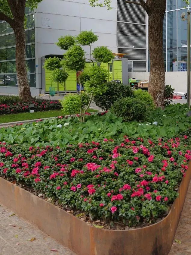 长阳创谷段体育中心外侧 上海国际设计中心附属绿地 国康花园 位于杨浦区中山北二路国康路 占地面积约2052㎡ 隶属于上海国际设计中心的附属绿地 从郁闭单调、功能单一 到满足市民多元化需求 改造后的国康花园 被赋予新的使命和活力 通过增加出入口和小通道 提高绿地内外沟通性 改善办公人群的通勤流线 也便于居民进入休憩 改变绿地单一职能 设置休憩场地、坐凳、休憩亭、 吧台座椅、办公亭等 为周边居民提供户外活动交流场所 发挥20分钟公园效应 提升绿地开放功能 在保留原有乔木基础上 植入无尽夏八仙花、百子莲、 火焰南天竹、矾根等彩化与花叶植物 提升整体绿化效果。 如今,这片绿地已成为色彩丰富、 功能齐全的开放共享绿地。