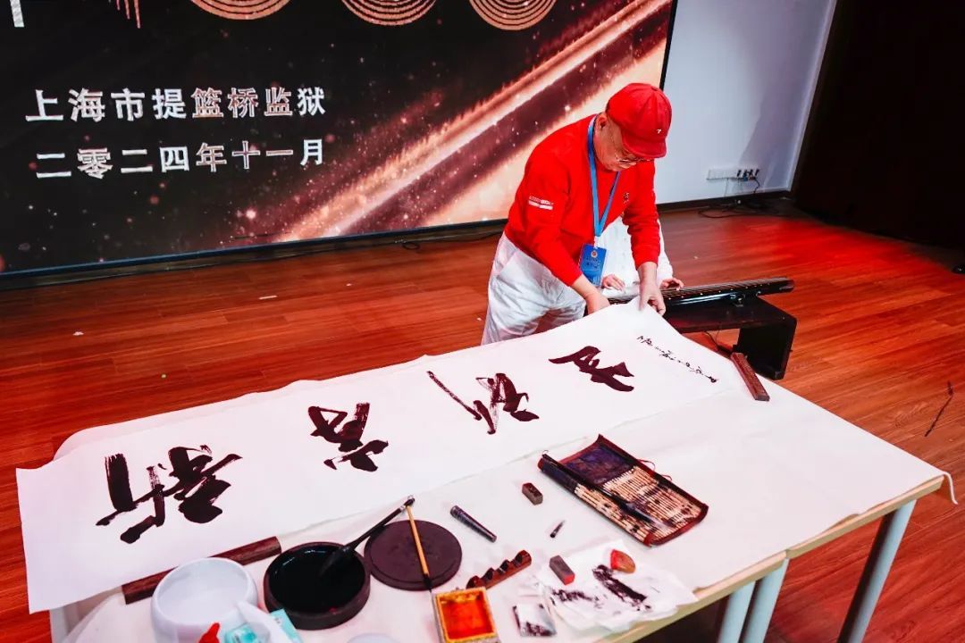 上海八埭头书画院著名书法家顾本建老师现场为本次活动题字“新岸新生”,希望服刑罪犯在文化中改造,走向新生。