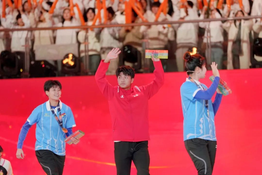 六场比赛攻入九球的蒯纪闻荣膺男足“最佳射手”,他在获奖感言中表示:“首先我要感谢我们团队,感谢徐指导,感谢帮助过我们团队的人。希望将来在更大的舞台取得更好的成绩,展现自己。”