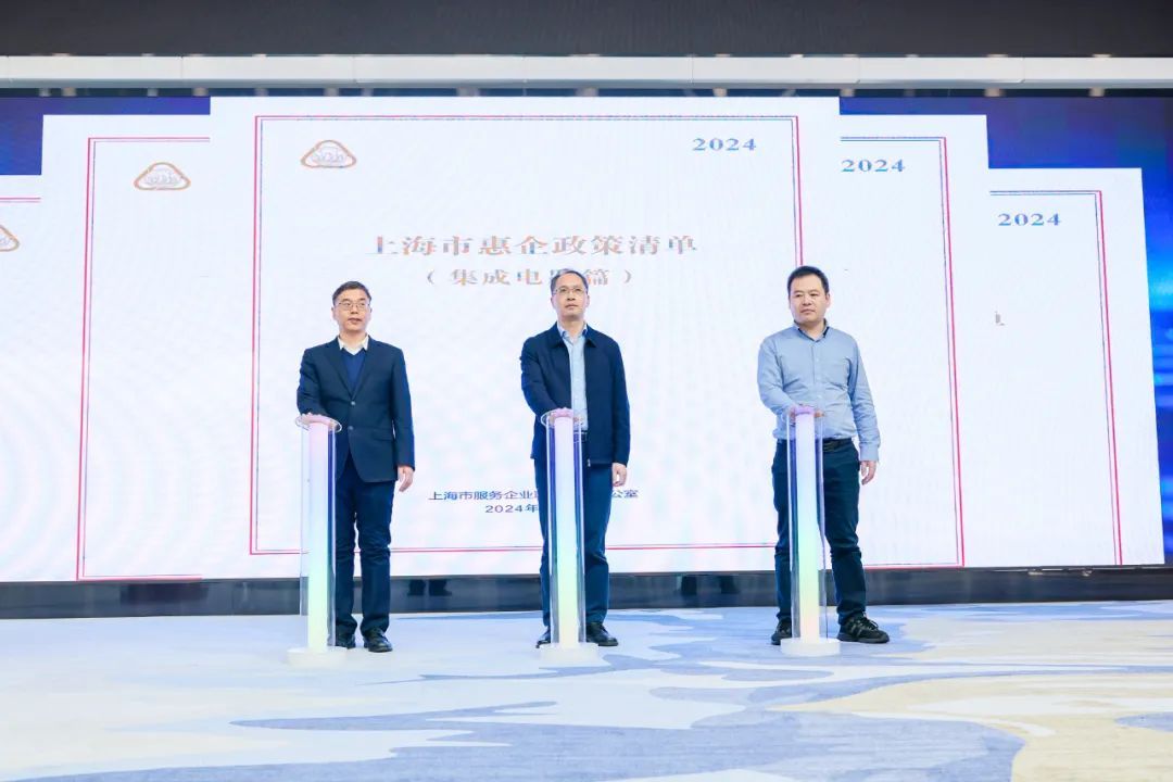 上海市发展和改革委员会营商环境处处长、二级巡视员卢爱国、上海市中小企业发展服务中心主任卫丙戊和上海市经济和信息化委员会集成电路产业负责人共同上台发布了《上海市惠企政策清单》(集成电路篇)。清单共梳理汇集了上海市及各区在资质荣誉、资金扶持、税费优惠等方面对集成电路企业的扶持政策38项,并对外发布。嘉定区经济委员会副主任张静萍、嘉定区发展和改革委员会副主任邓素芳共同上台发布《上海市惠企政策清单》(嘉定篇)。