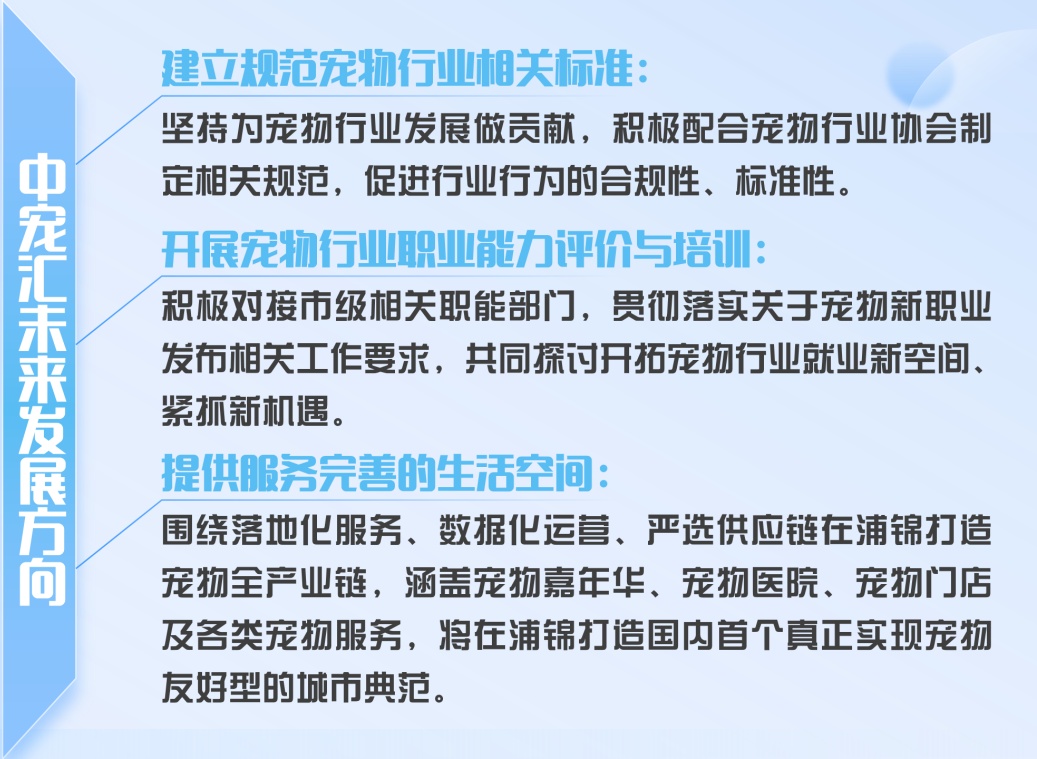 中宠汇创新人才基地招商负责人叶露滢表示将会从三个方面为浦锦街道打造宠物产业高地“添砖加瓦”,政企合力共绘蓝图:
