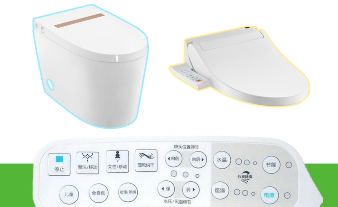 根据《卫生洁具 智能坐便器》(GB/T 34549-2024),这类产品的基础功能包括温水清洗功能(臀部清洗、妇洗功能)和坐圈加热功能。根据结构不同,可分为一体式和分体式(智能坐便器盖板)两大类。