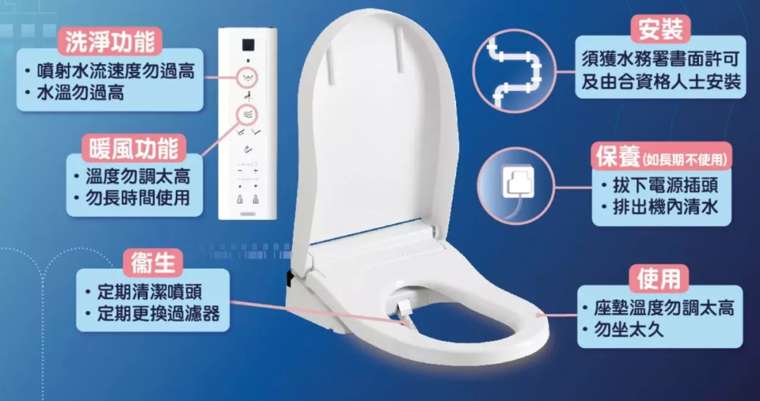 使用时,应该注意定期清洁坐圈、喷头、冲洗系统等部件,以免滋生细菌。