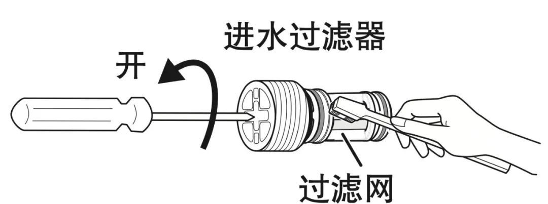 某款电子坐便器使用说明书介绍了如何清洁进水过滤器