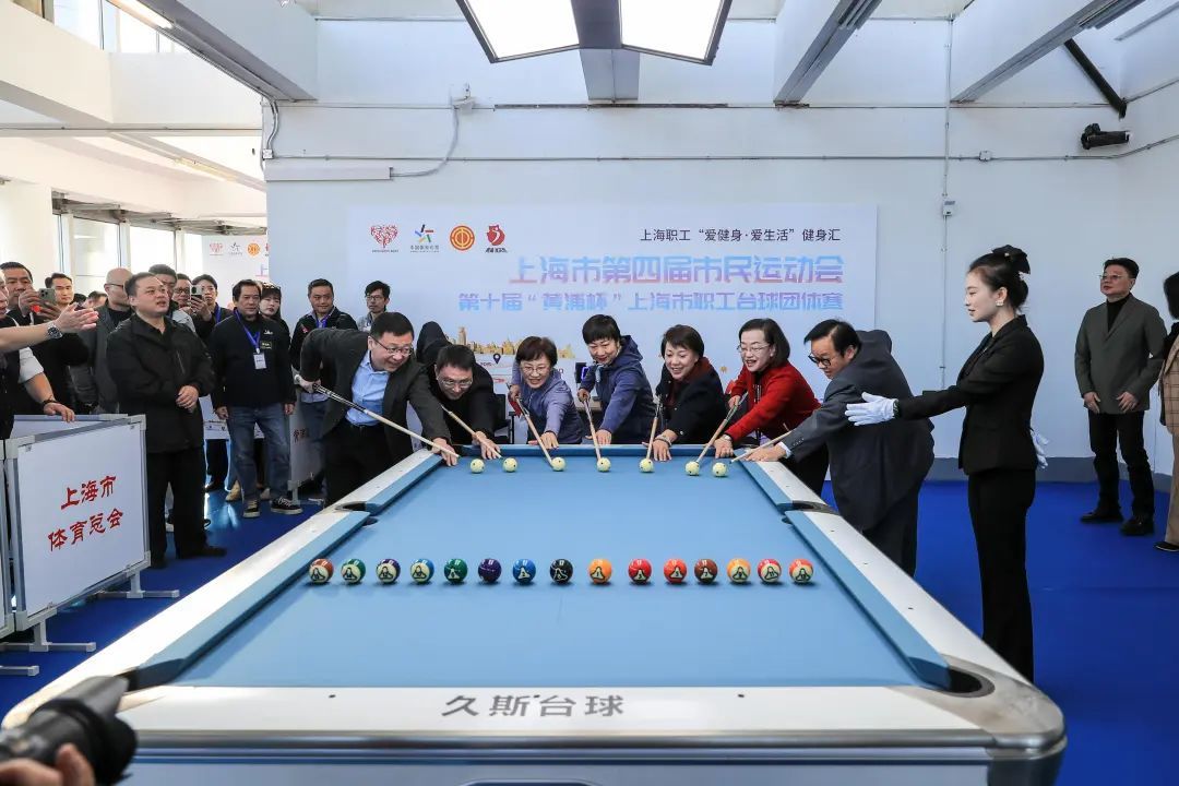 11月29日上午,2024年上海市第四届市民运动会·首届上海职工健身汇项目系列赛事——第十届“黄浦杯”上海市职工台球团体赛在外滩中心顶层开杆。赛事共吸引来自上海市总工会直属区局(产业)工会的32支代表队、160名运动员同场竞技。