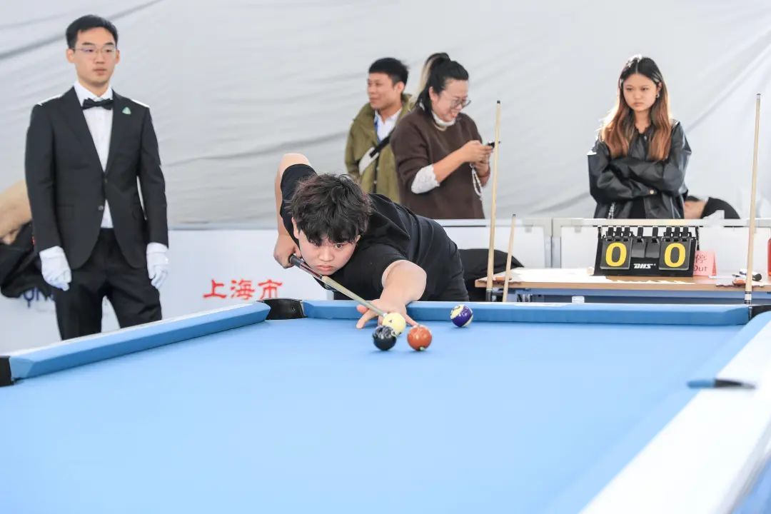 第十届“黄浦杯”上海市职工台球团体赛的竞赛项目为美式8球团体赛,全程采用单败淘汰赛制,短平快的赛制也为比赛的安全与精彩提供了有力的保障。比赛现场,参赛选手们身着专业服装,沉着冷静、全神贯注,每一次出杆的角度和力度都经过精密计算,台球与球杆碰撞都是力与美的最佳演绎。