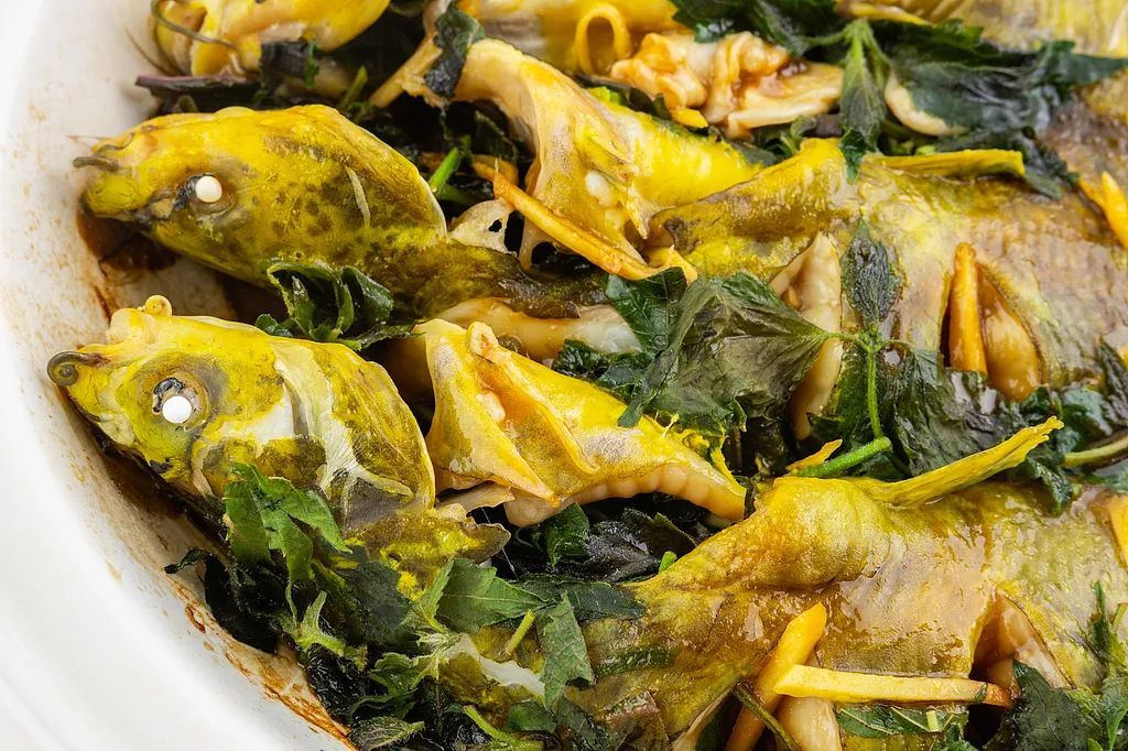 另外,炖鱼的时候也可以放一些紫苏叶。三甲胺是鱼身腥味的主要来源之一,有研究发现:三甲胺在紫苏水溶液中会被吸附或者络合成新物质,因此可以利用紫苏叶水提物掩盖三甲胺的鱼腥味。咱们平时炖鱼的时候放点紫苏叶也能起到些作用,还能增加独特的香味。