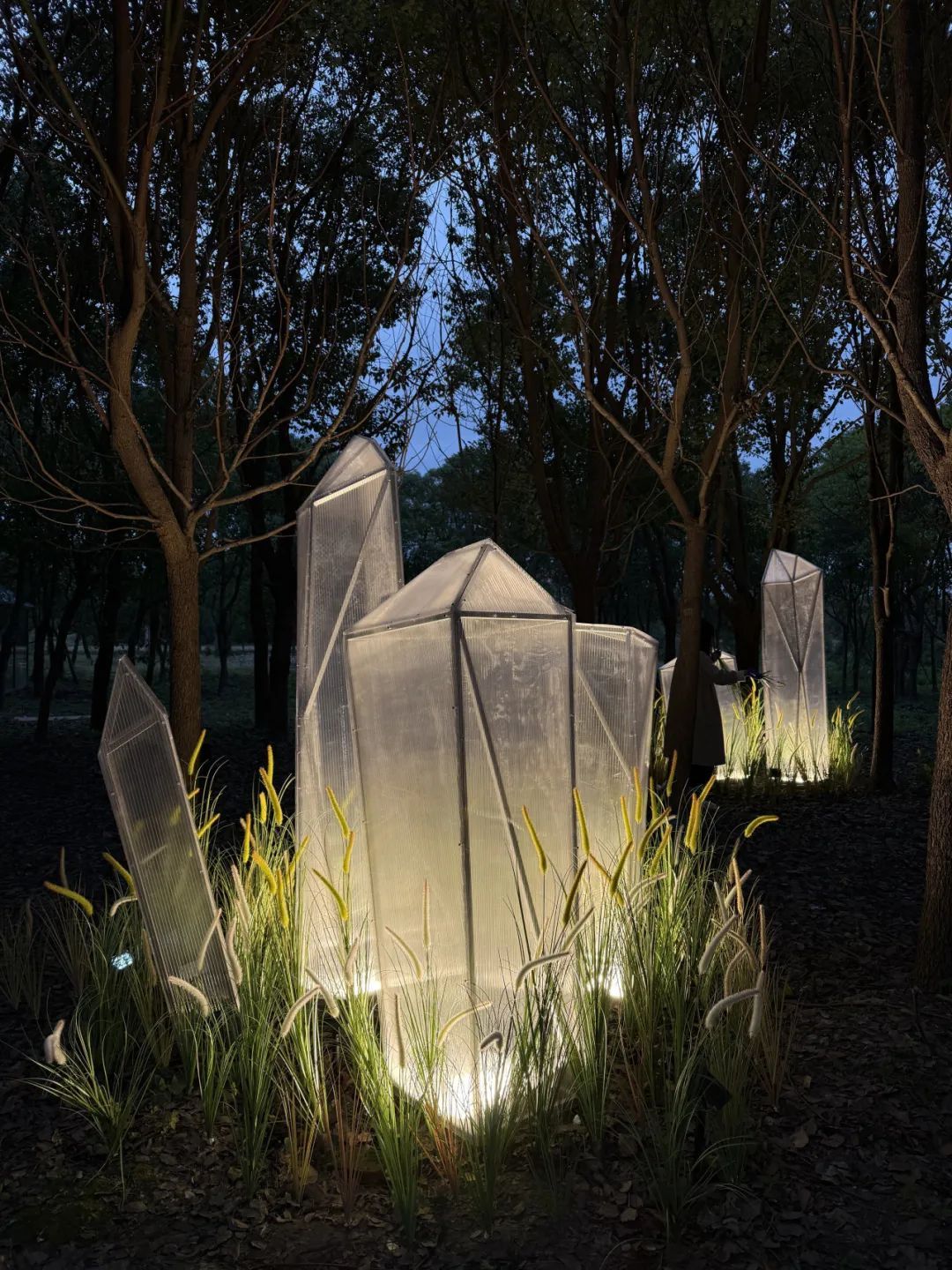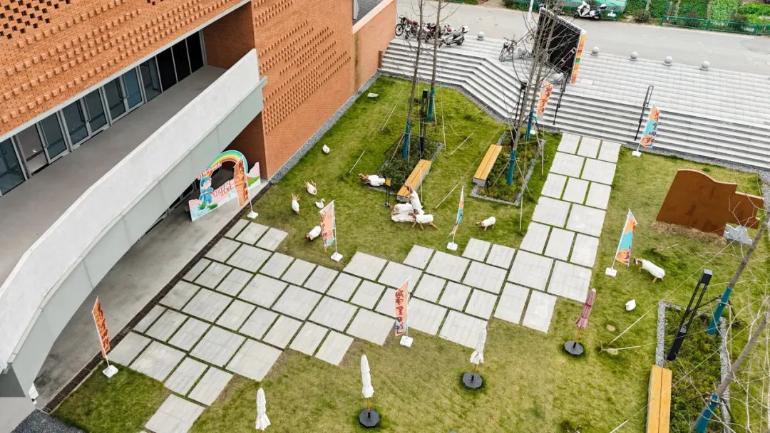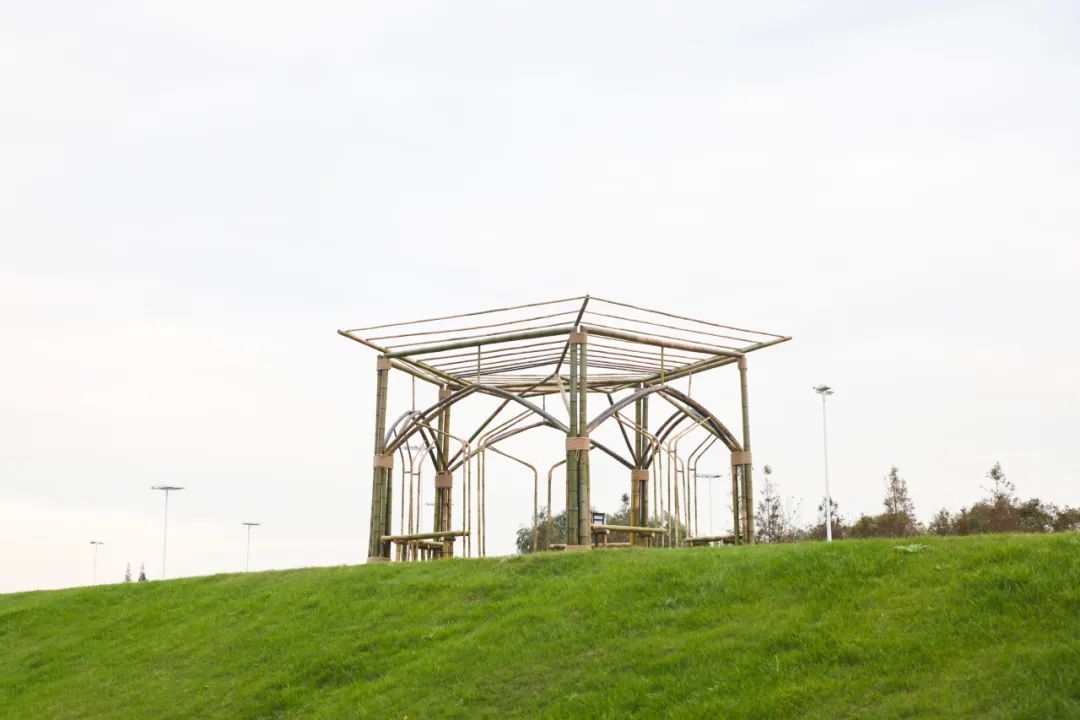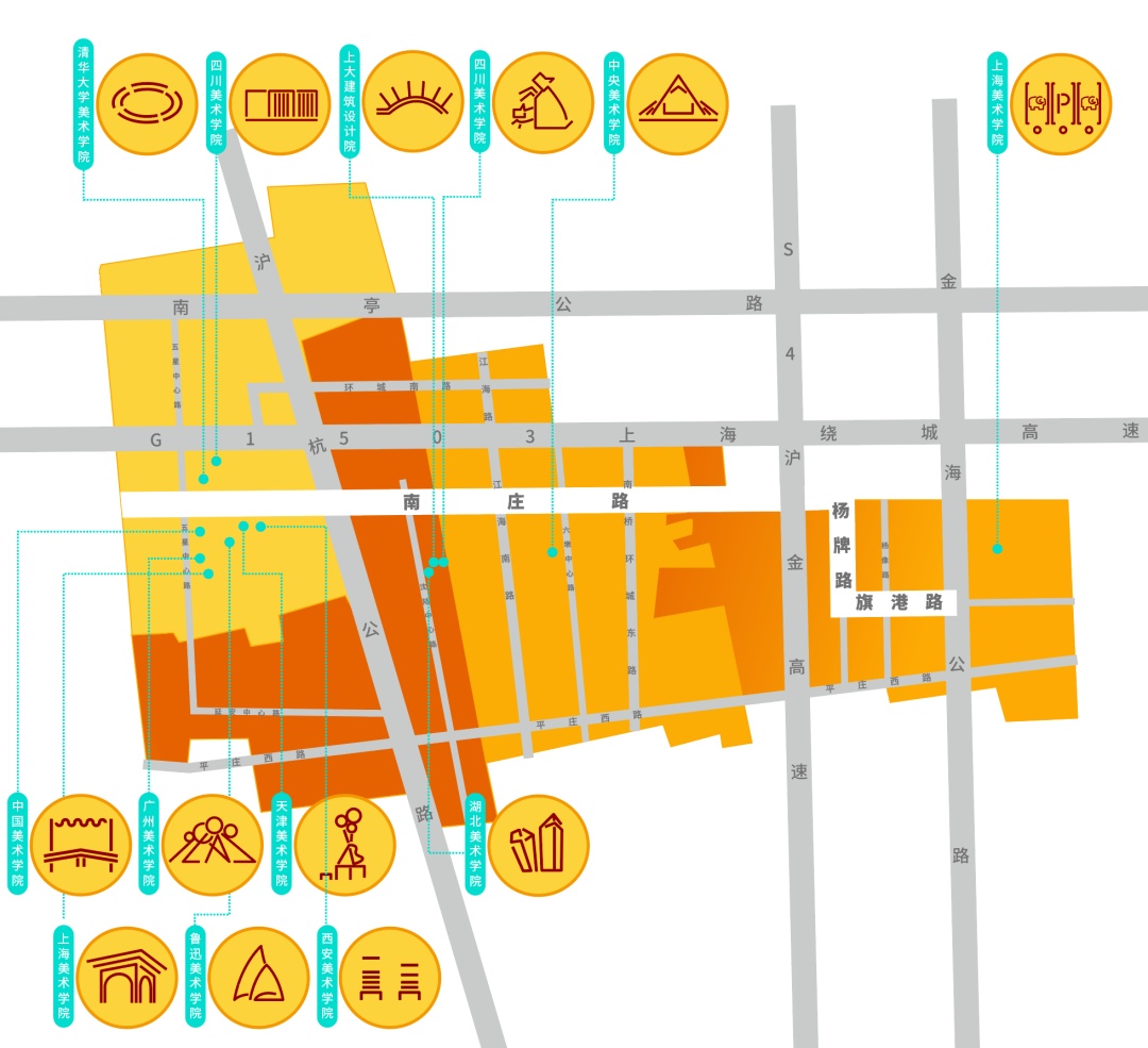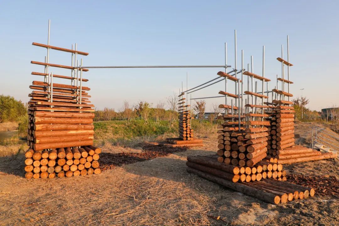 十一月,中央美术学院、中国美术学院、清华大学美术学院、广州美术学院、鲁迅美术学院、四川美术学院、西安美术学院、天津美术学院、湖北美术学院、上海大学美术学院共十所全国美院设计团队相继来到南桥镇南庄路沿线乡村,为“摩登田野2024:摩登南庄·乡村艺术走廊计划”布展,助力乡村振兴发展。 相信大家对活动期间的无人机表演、灯光秀、集市、美育活动仍意犹未尽。虽然,“摩登田野2024”的部分活动已经落幕,但是南庄路沿线的13种艺术装置仍在展出中!所有的艺术装置将持续展出至12月20日左右,大家可以继续打卡参观。 十大美院在地艺术装置导览图 • 在参观前,您可以通过以下介绍提前在线上身临其境地了解艺术装置的创作灵感。 • 《呀!鸭棚》 中央美术学院 《呀!鸭棚~》采用了自然乡村元素与现代城市生活相融合的造型,取现代社交新空间——帐篷的形象,用简化成木质框架结构表现,外表附上现代感十足的七彩反光条带,内里放置一个鸭子形象和一个巨大的铺满稻草的鸭窝,人们可以钻、爬、躺与其互动,享受快乐休闲时光的同时体验“偷蛋摸鸭”的乡村童年意趣,唤起村民的遗忘的美好回忆。作品通过对乡村元素的艺术设计和各种材料的融入,使之成为既具有乡村自然美感又充满创意的装置艺术。 · • · 《望野》 中国美术学院 作品《望野》基于场地的需求,尝试着做了一组休闲座椅,既能遮阳避雨,又能眺望稻田和夕阳。设计将木质杆件和幔布结合,提供休憩基础上注重观赏性,悬挂的纱布融入当地撕纸技艺,使景观设施具有独特的江海地方文化。其与网球基地、稻田、夕阳等成为摩登田野的一道亮丽风景。 • 《六季稻语》 清华大学美术学院 项目根据良渚文化玉琮的样式展开,旨在通过较小程度的干预,以温和的姿态介入现有场地,将种稻这一项古老而持久的生产活动以景观化的方式呈现,尝试营造一种生长于大地,最终也消解于大地的艺术景观。通过此次艺术实践,我们期望激发当地居民及远道而来的游客对乡村田园的共同记忆,追溯人类对大地最本真的感知与联系。 · • 《星火永恒》 广州美术学院 本装置以奉贤滚灯为原型,通过凝固滚灯表演过程中火光飞溅的瞬间,表达对风调雨顺、五谷丰登的愿景,寓意奉贤文化薪火相传,匠心永恒。装置学习采用奉贤滚灯的编织工艺,牵拉彩线形成一个“日常”聚会的全新场域。新的空间带来了“非常”的光影感受,使人们能够多角度观察,切身感受舞者视角及滚灯的材质触感,获得更真实的体验,拉近了传统文化与日常生活的距离,也激发了人们对传统艺术的理解与兴趣。 • 《梦回良渚》 鲁迅美术学院 “梦回良渚”紧密结合在地性,旨在探索在地文化与艺术设计之间的链接。步入其中即被良渚文化信息围合,亚克力材质的折射,让人在镜面中既看到自我形象,又看到良渚文化符号,二者折射于同一面镜中仿佛同处一片镜面时空,仿佛与千年前的良渚人民有所共鸣。 · • 《七彩江海》 四川美术学院 通过彩色塑料布等材料来操纵阳光,使色彩变化为装置增添了丰富的视觉冲击力,营造缤纷的光影视觉效果——缤纷的多彩光影是装置的灵魂所在。借助廊道本身具备的空间属性,为观者打造出具有沉浸式体验感的光影氛围空间。使“百亩彩稻”的游览点位从视觉效果上能从环境中得到凸显。 · • · 《奇遇记》 四川美术学院 作品选择“奇遇”作为创作主题,通过描绘了一群欢快动物的嬉戏场景,展现出一个奇幻的平行世界。在这个世界中,各种动物在阳光下自由自在地玩耍,彼此之间没有隔阂,展现出无尽的欢乐与和谐。作品不仅是对想象力的展现,更是对生物共性的一种深刻隐喻。 • 《芃芃》 西安美术学院 “芃芃”“有‘芃’自远方来,不亦乐乎”“芃”字也代表着奉贤乡野欣欣向荣之态,并通过巧妙地利用当地废弃的材料,赋予了这些材料新的生命,同时还确保了装置的高耐久性和经济实惠。在造型上升腾效果与周围的稻田环境相融,仿佛是大自然的一部分,既突显了乡野的自然之美,又体现了可持续发展的环保理念。通过这种方式,我们希望能够在保护环境的同时,也为乡村带来更多的艺术气息和文化氛围。 • 《田野琴韵》 天津美术学院 “田野琴韵”,它将音乐、艺术与大自然紧密相连。钢琴作为音乐的载体,气球赋予其梦幻色彩,风铃带来自然之音,共同构成了一个独特而迷人的景观,让每一个观赏者都能在田野的怀抱中感受到艺术与自然交织的魅力。 • 《镜藤共生》 湖北美术学院 “镜藤共生”设计灵感来源于对现代城市环境中人与自然关系的深刻思考。设计通过透明的亚克力面板打造出多个多面水晶状结构,这些结构在阳光下能够折射出柔和而迷人的光线。植物被巧妙地安排在装置周围,随着时间的推移,它们会逐渐缠绕在水晶结构周围,形成一幅自然与人造物和谐共融的画面。 • 《停一亭》 上海美术学院 于穿梭中享受诗意,在停留间观望意趣。作品采用竹材制成,竹拱门与蔬菜大棚的钢结构拱形相呼应,空间开放通透,提供更多与环境对话的可能。五边形竹亭顶部汇聚成五角星图案,意指江海村过去曾为五星村的历史。阳光穿过疏密渐变的竹条洒下婆娑光影,投射在草地上,竹凳前,人们可以在此放松身心,感受自然。 · • · 《生肖停车场》 上海美术学院 “生肖