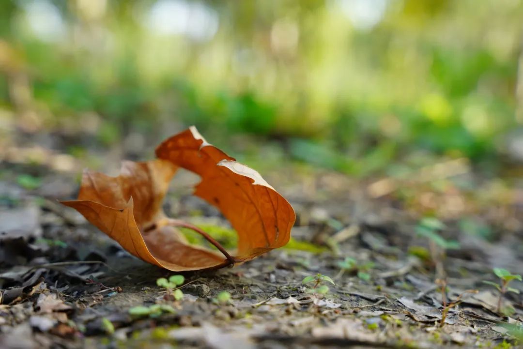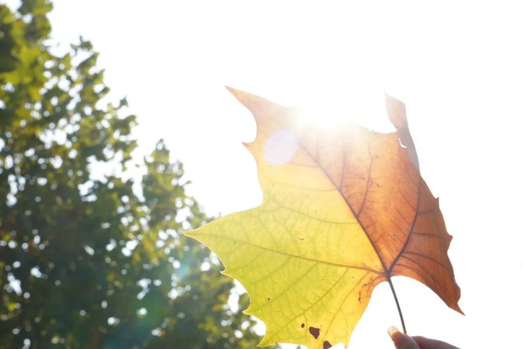 捡起一片落叶,温柔的阳光洒下,树叶的脉络清晰可见,光影与色彩的交织中仿佛能读出落叶的生命历程。