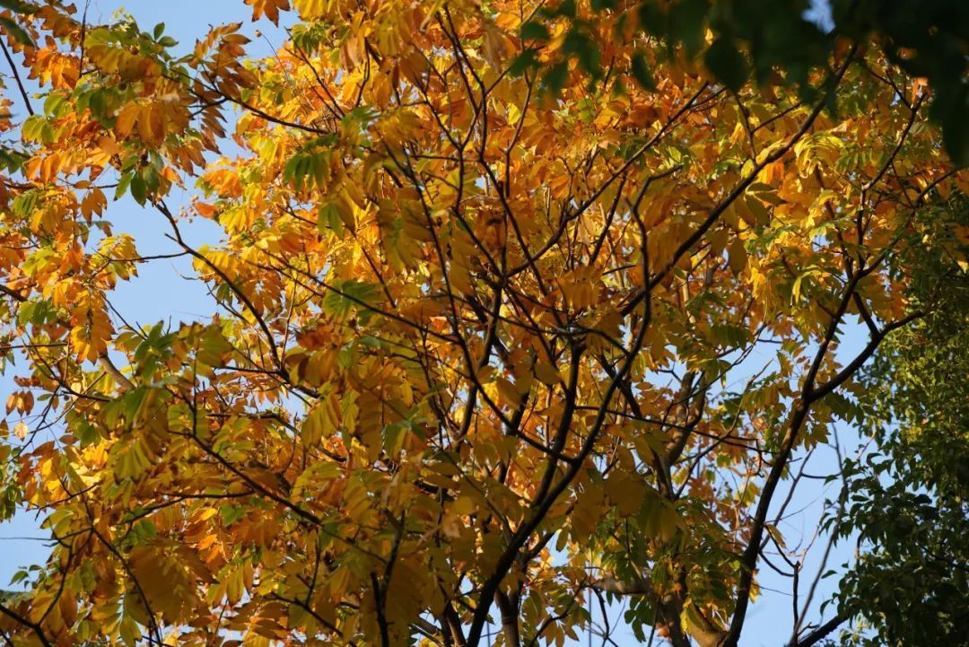 从落叶的视角看去,天一绿地公园换上了五彩斑斓的外衣,树上的枝叶正在陆续变色,每一处都如同画卷般令人流连忘返。