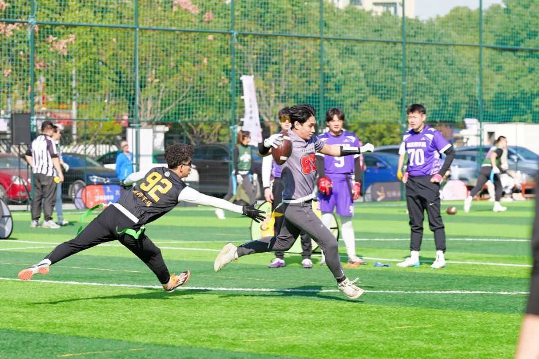 11月30日,冬日的阳光洒在浦江镇浦连市民健身中心的绿茵场上,为这里增添了几分温暖。随着裁判的一声哨响,上海市第四届市民运动会“源起浦江”腰旗橄榄球公开赛暨上海市“花田村碗”腰旗橄榄球村超联赛正式拉开帷幕。场上,运动员们身手敏捷、配合默契,展现出高水平的竞技状态;场下,观众们的加油声和欢呼声此起彼伏,现场气氛十分热烈。