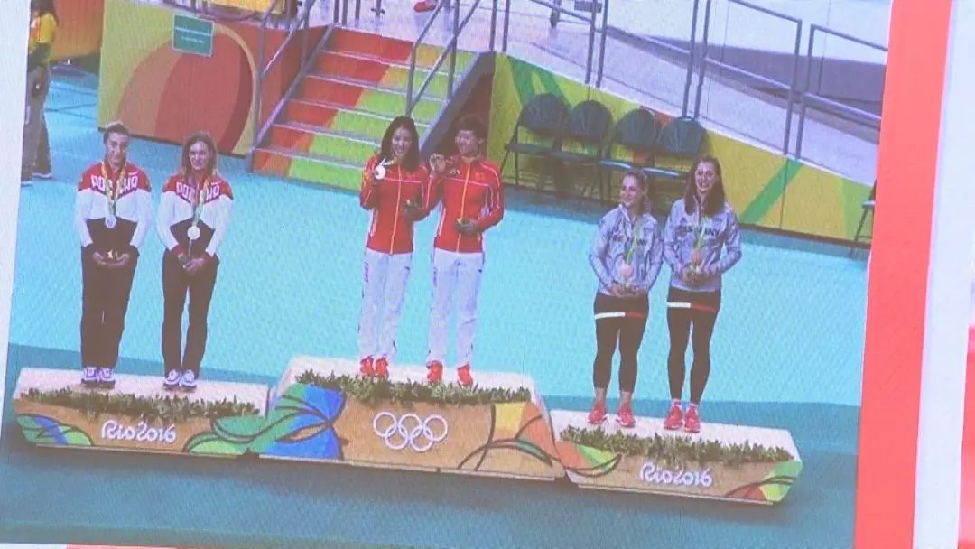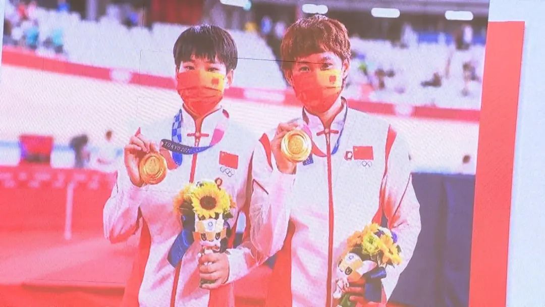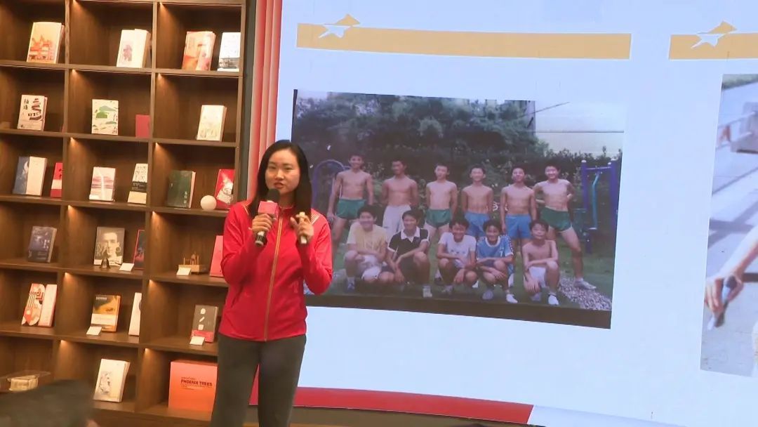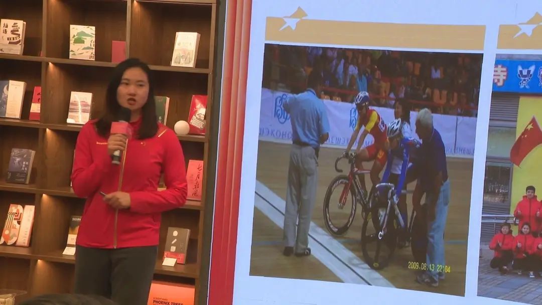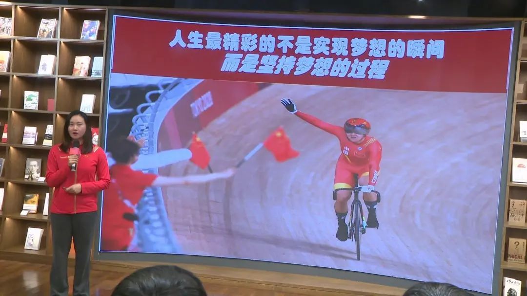 活动现场,钟天使一边播放2021年在东京奥运会场地自行车女子团体竞速赛决赛的录像,一边讲述那决赛紧张的时刻。“比赛距离一共只有500米,我们整个比赛时间用了30秒多一点。半圈之后我们领先,比赛需要两名运动员一人完成一圈,就犹如交替棒。最后半圈,我们还在领先。最终冲出终点线,夺冠的时间是31秒895,最快时速在56.285公里每小时,并且与对手之间的差距只有0.08秒,可谓是千分之秒的差距。”在这次奥运会的第一轮比赛中,钟天使和队友还打破了该项目的世界记录。