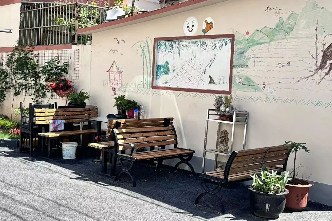 随着新梯拔地而起、绿化更美观、楼道整洁干净,也带动了其他楼栋的热心居民纷纷行动起来,大家把过去破旧的长椅进行了翻修油漆固定,为老年居民提供了一处安逸的休闲角。同时,大家还齐心协力帮门前一棵三十多年的桂花树切了围栏石墩铺了防腐木。