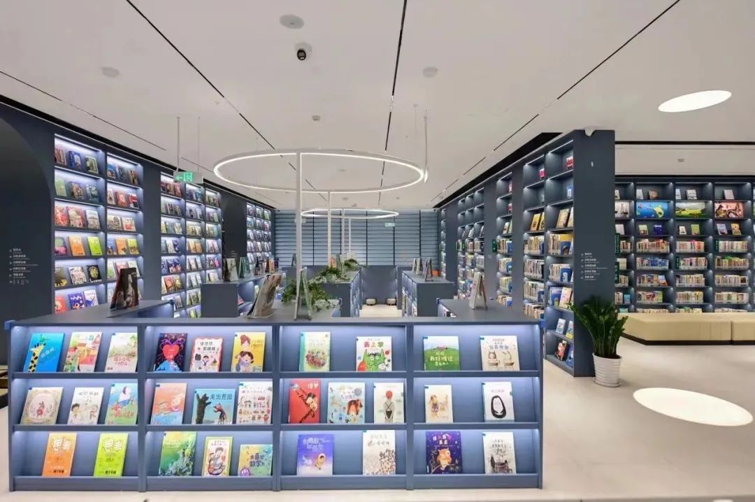 少儿馆为上下两层,共拥有3.5万余册藏书,一层的分类以儿童视角出发,排列成12个主题,包含童书、艺术书、外版书等,贴近孩子们的日常生活与好奇心。二层按索引书号细架排列,设立主题阅读区、青少年阅读区、户外阅读区。