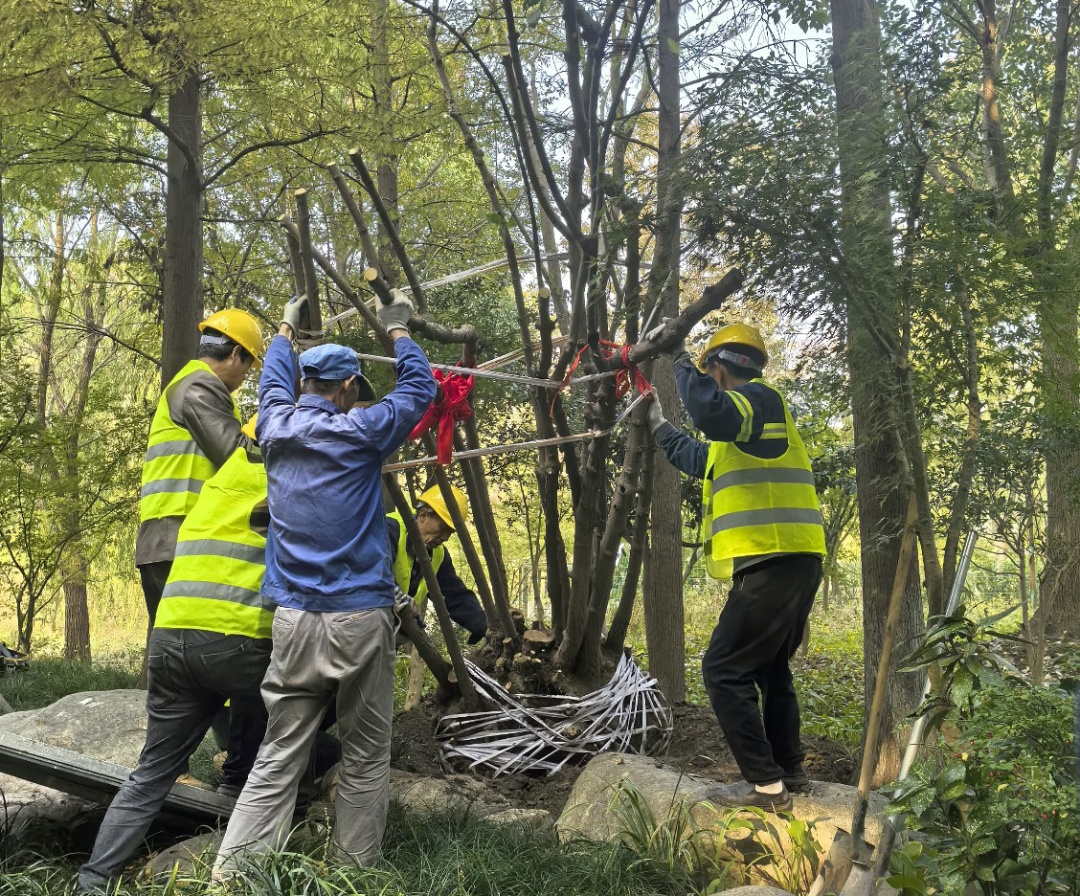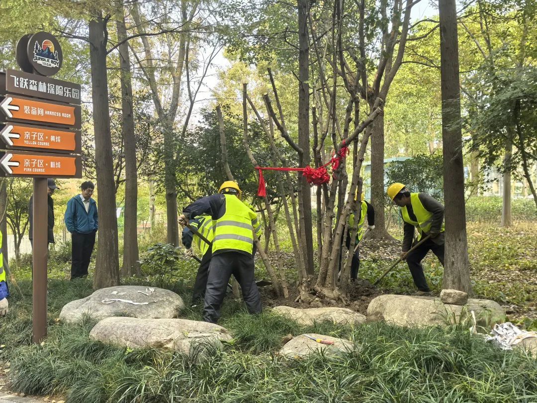 在移植过程中,养护人员还细心地对蜡梅进行了修剪和固定,以确保其在运输过程中的安全。同时,浦江郊野公园也为蜡梅准备了新家,选址在公园靠近3号门的绿地里。据顾先生介绍,这里临水且种植的多为水杉等落叶树木,可以为老树遮蔽烈日,提供良好的生长环境。