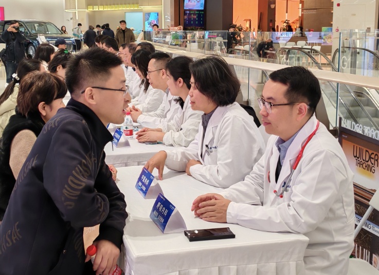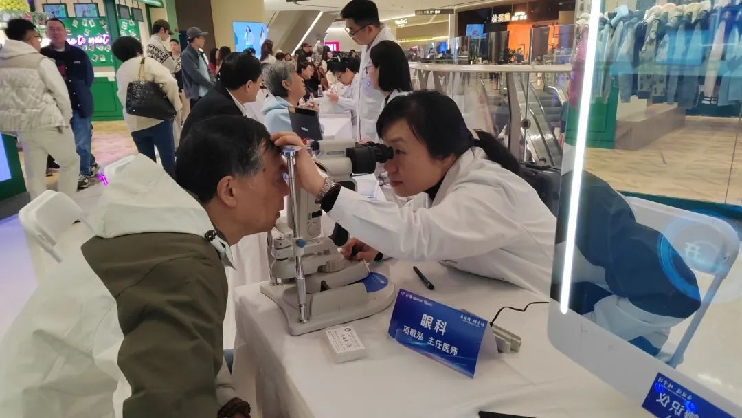 咨询摊位前,20多位中西医大咖正在为市民提供便捷的健康问诊和咨询服务。“您的倒睫毛一定要定期去医院处理,如果处理不当,会造成眼部炎症的。”在眼科检查摊位前,带着爱人逛商场的周老伯,和爱人一起检查了眼睛。“逛个街还能遇到医生,还有免费检查,这个挺好的。”周老伯告诉记者。