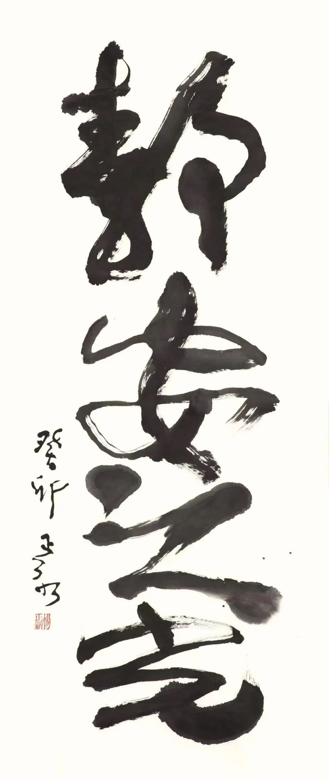 今年上海书展期间,静安区图书馆邀请其在海关楼举办了“忘形”——杨正新“得意”书法展,墙上擘窠有豪情,柜中三尺述真意。将最时髦最有趣的绘画语言和最严肃最传统的文字结合起来,让古老的汉字生动而明艳。杨正新的书画艺术,从传统中来,向时代里去。他的书法,更有一种“复归于婴儿乎”的“拙”与“道”。展览期间,杨正新将其作品——巨笔书法“圕”捐赠给静安区图书馆。