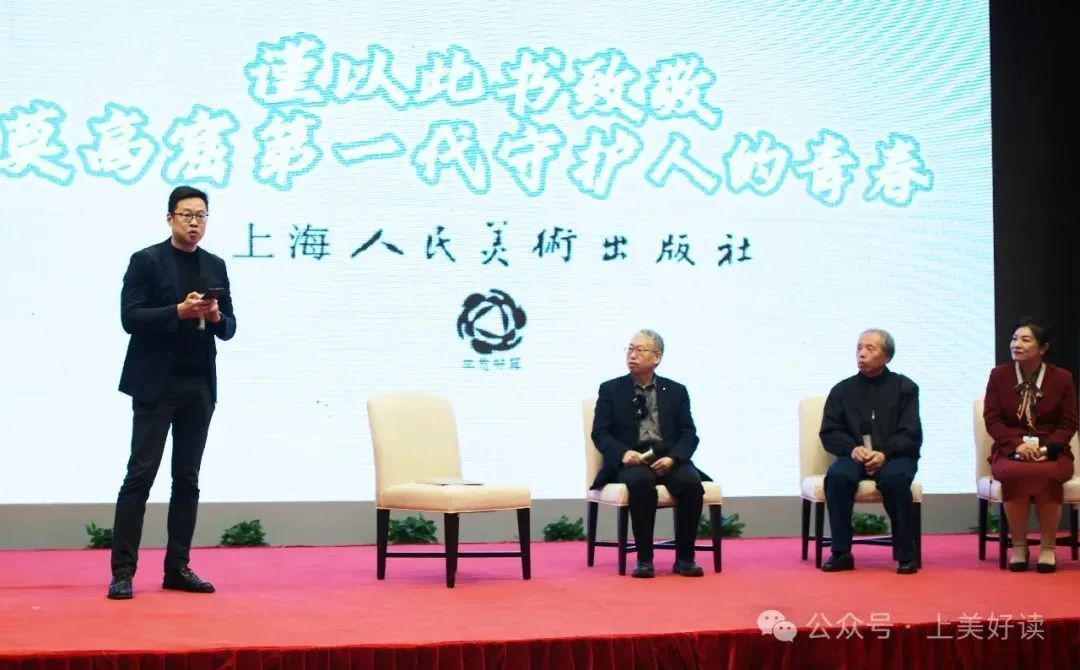 三十五年前,在段文杰先生的主持下,也是由上海人民美术出版社和敦煌研究院共同出版了一本名为《敦煌壁画临本选集》的书,而今天《致青春》的集结出版,实现了跨时空的纸间“重逢”,上演了一次跨时代的演绎。上海人民美术出版社负责人为观众介绍了这段跨越世纪的敦煌书缘。
