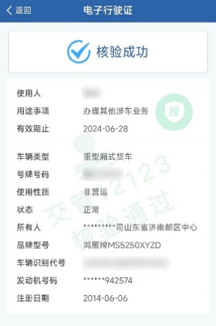 “交管12123”App用户可通过扫描二维码核验电子行驶证。民警在执法或者办理业务时,也可使用集成指挥平台App、执法PDA扫描二维码,核查确认电子行驶证有效性。