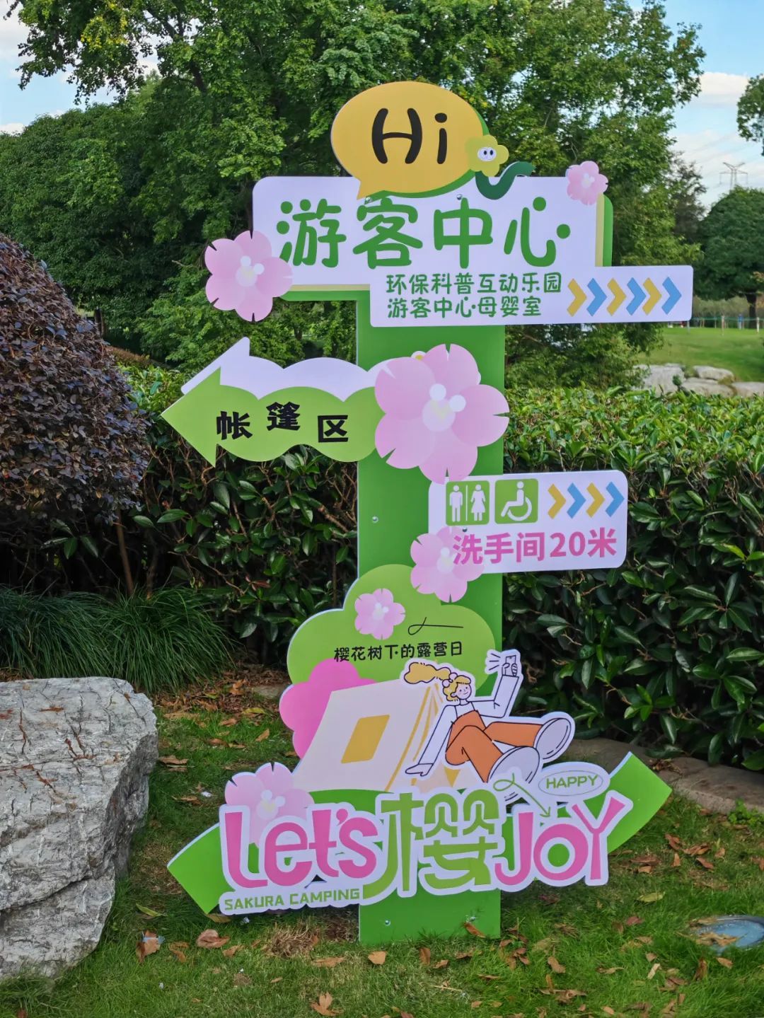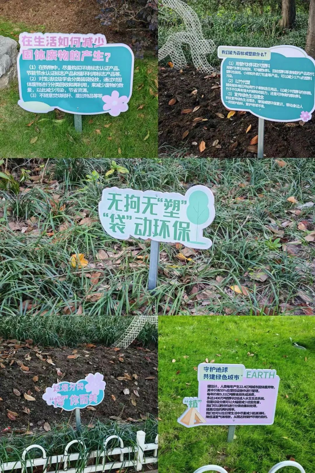 漫步体育公园,花插宣传牌与道旗随处可见。这些宣传牌融入了樱花元素,花插中蕴含诸多科普知识,方便市民随时学习垃圾分类知识;定制化道路指引立牌兼具装饰美化与指引方向功能,游客可“樱JOY”这满是环保气息的美好环境。
