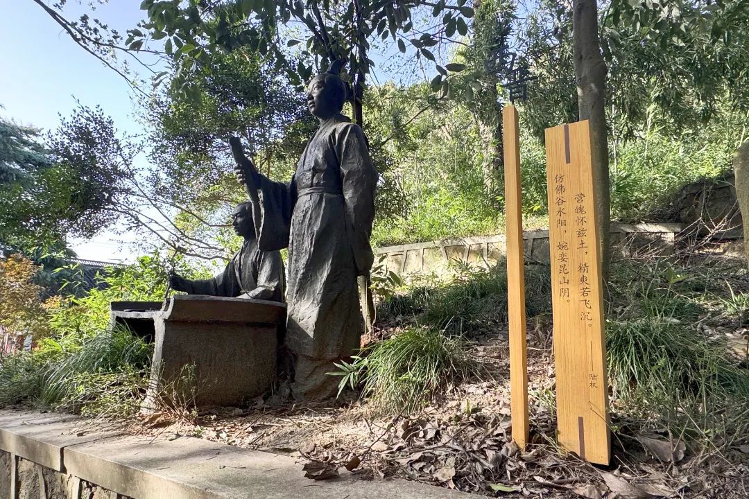 据松江林场工作人员介绍,小昆山园内的另一个变化,是在步道上安放了二陆雕像及诗词装置,让游客能在休闲漫步时感受到文化历史气息。