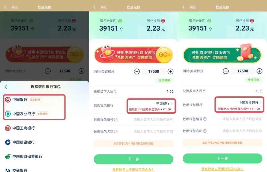 ⭐一重好礼:沪碳行积分商城已推出碳积分兑换数字人民币翻倍奖励!即日起兑换数字人民币现金至中国银行数币钱包、中国农业银行数币钱包,立享数字人民币双倍回馈!