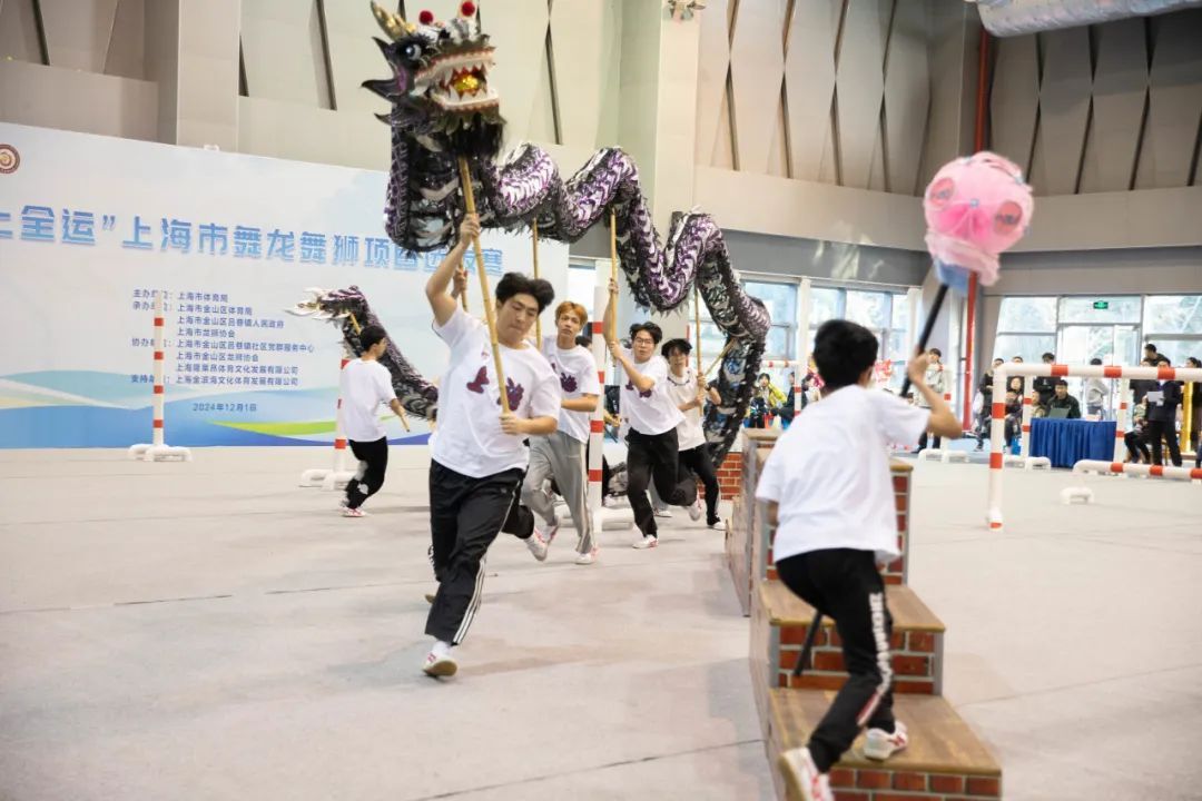 昨天(12月1日),“我要上全运”上海市舞龙舞狮项目选拔赛在金山体育馆举行。来自全市各区13支优秀龙狮代表队的近200名运动员汇聚一堂,争夺第十五届全国运动会的参赛资格。