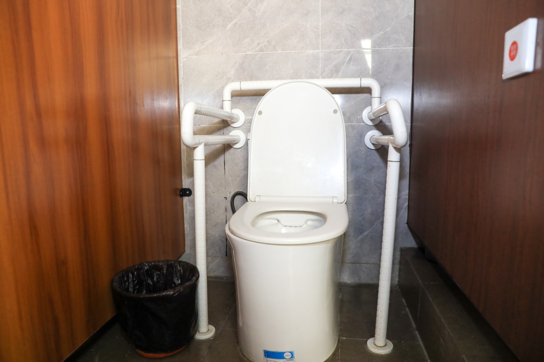 张堰灯光球场公厕位于镇区繁华地带,周边有居民小区、商业店铺、学校及健身公园,人流量密集。2021年,张堰镇根据市民实际需求,完善灯光球场公厕功能设施,有效解决了不同群体的如厕难题。今年,又结合公厕适老化适幼化升级改造,新增了落地式小便器、手杖及适幼化马桶圈等,满足了不同年龄层次人群的使用需求。值得一提的是,适老化坐便区域的门洞宽度由原先的60厘米拓宽至80厘米,使轮椅通行更加顺畅,并增设了无障碍扶手和紧急呼叫器,极大地提升了老年人及行动不便者的安全系数。此外,公厕内还张贴了醒目的适老化、适幼化标识,为特殊群体提供便捷的指引服务。