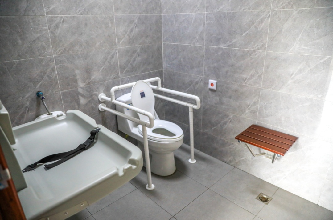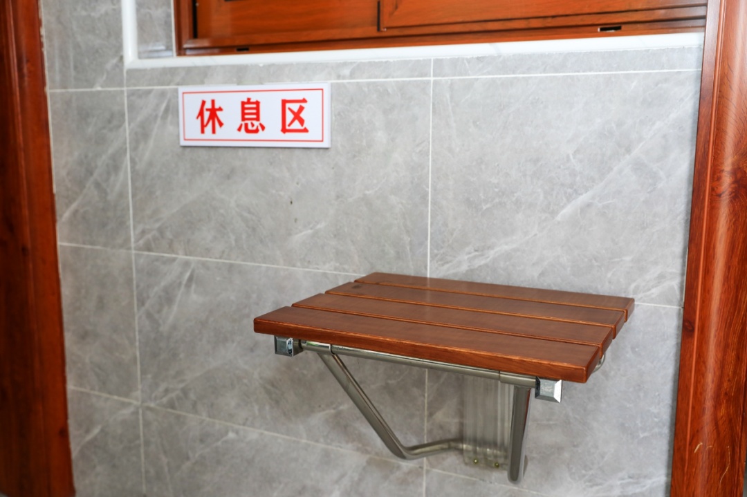 而在张漕路1号的公厕,也同样进行了全面升级。该公厕原本就设有第三卫生间,配备了宝宝护理台、坐便扶手、洗手池等设施。在此基础上,又进一步扩大了出入口宽度,安装了防撞条、休息凳等人性化设施,进一步提升了居民的使用体验。