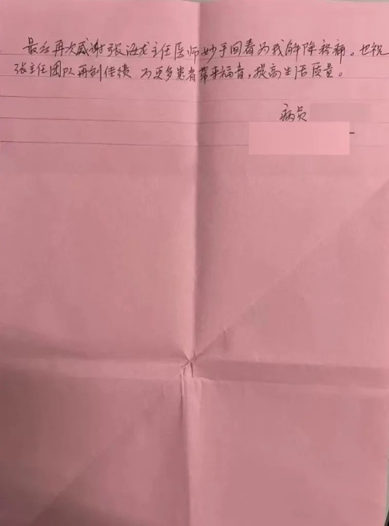 而对于这封感谢信,张海龙主任团队颇感“意外”。“我们并没有做什么‘惊天动地’的事,只是在认真执行脊柱微创诊疗规范的基础上,遵循加速康复外科(ERAS)理念,从治疗的各个环节入手,帮助患者以最佳生理和心理状态取得满意疗效。”该团队方面表示。