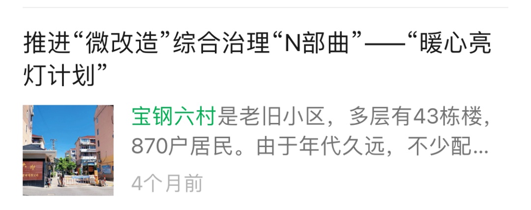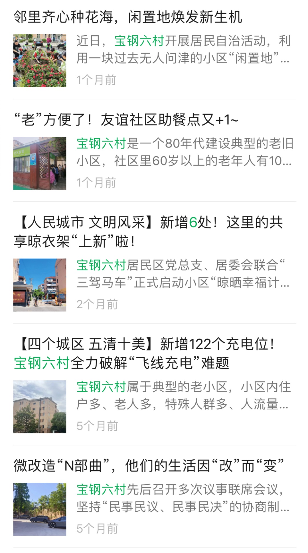 宝钢六村居民区党总支始终聚焦社区居民的急难愁盼,回应民生关切。今年年初,陆永青到宝钢六村居民区党总支任职书记后,通过调查研究,着力解决过去未能解决的难题。居委会主任童振良全力配合,与陆书记共同协商各方,带领社区居民共同努力,让社区党员群众见证了“六个月大变样”的新局面,直观体验到了新班子、新作用、新观念、新实绩。