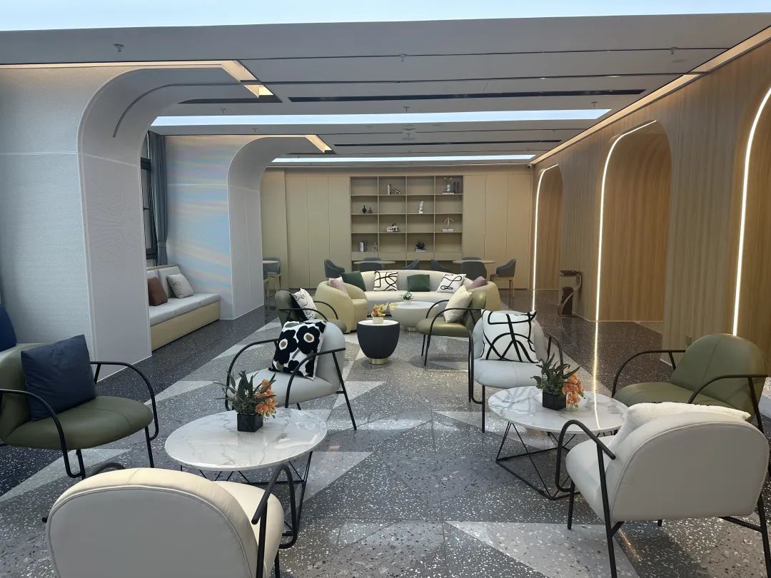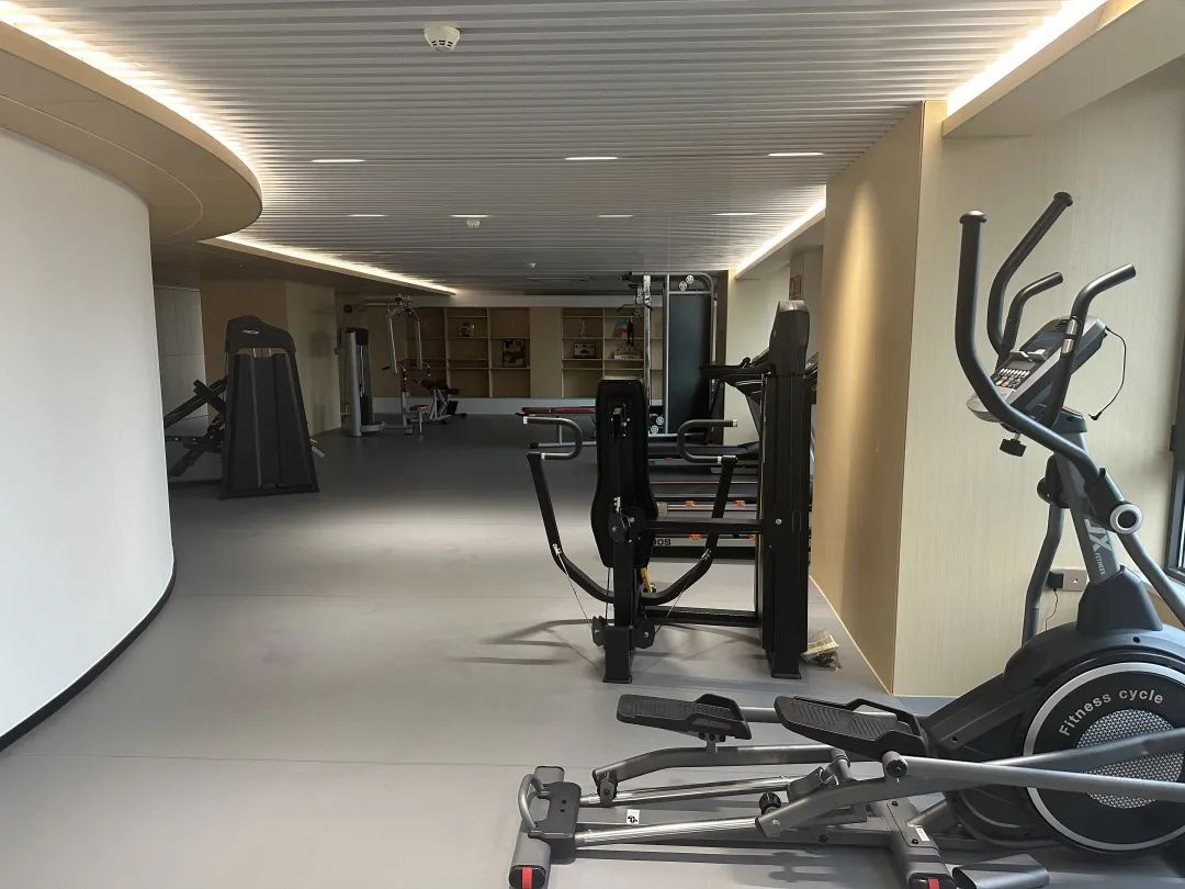 在3楼的公共空间,整个空间被划分为多功能健身房、休闲活动区、路演区、会议室等多个区域,休闲活动区宽敞明亮,配有沙发、桌椅,可以举办小型聚会,满足人才在生活、社交等层面的全方位需求。健身房中配有各种健身器材,健身房外侧还设置了阅读区,摆放了各种类型的书籍,为人才提供一个静谧、舒适的学习空间。