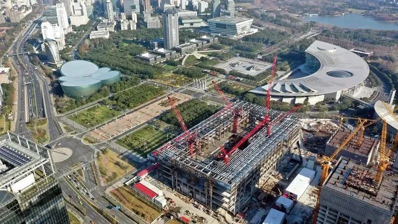 2015年年底,上海市委十三五规划《建议》全文公布,“加快兴建上海博物馆东馆”被列入其中;2016年初,上博东馆选址确定;2017年9月,项目正式动工;2020年底,工程主体钢结构封顶;2022年底,上博在建馆七十周年之际发布《上海博物馆“大博物馆计划”(2022-2025)》,总建筑面积约11.3万平方米的上博东馆初露峥嵘。而未来以构建海内外体系最完整的中国古代艺术通史陈列为主的东馆、以特展主题展为主的人民广场馆和以长江口二号古船为核心的北馆,将构成国内最大博物馆“航母群”之一。上海博物馆馆长褚晓波介绍,届时三馆馆舍建筑总面积将超过20万平方米,预计年观众接待总量超过600万人次,将跻身世界博物馆前十行列。