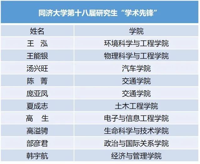 附:同济大学第十八届研究生“学术先锋”称号获得者名单(按姓氏笔画排序)