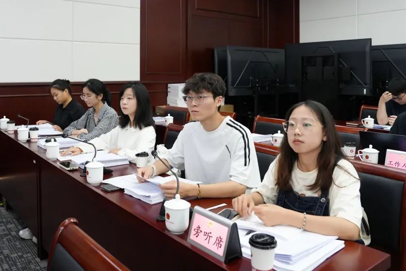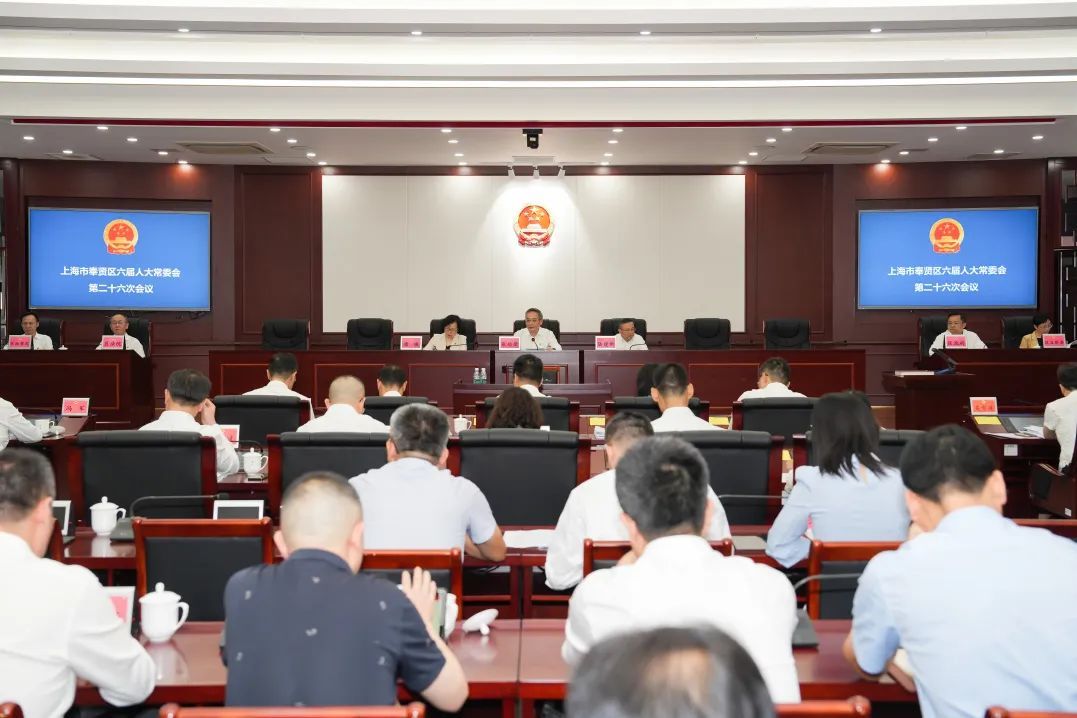 在奉贤区人大常委会会议室内,围绕《加强社区治理规范物业管理的实施意见》的讨论正在热烈地进行,代表们认真听取政府重大决策出台前报告,议出从立法联系点、代表“家站点”等平台汇集的真知灼见。这里同样也是全过程人民民主的展示窗口,会议室后侧席位安排有公众代表旁听,数名大学生认真听记,沉浸式参观体验,真切地走进人大、感知民主。