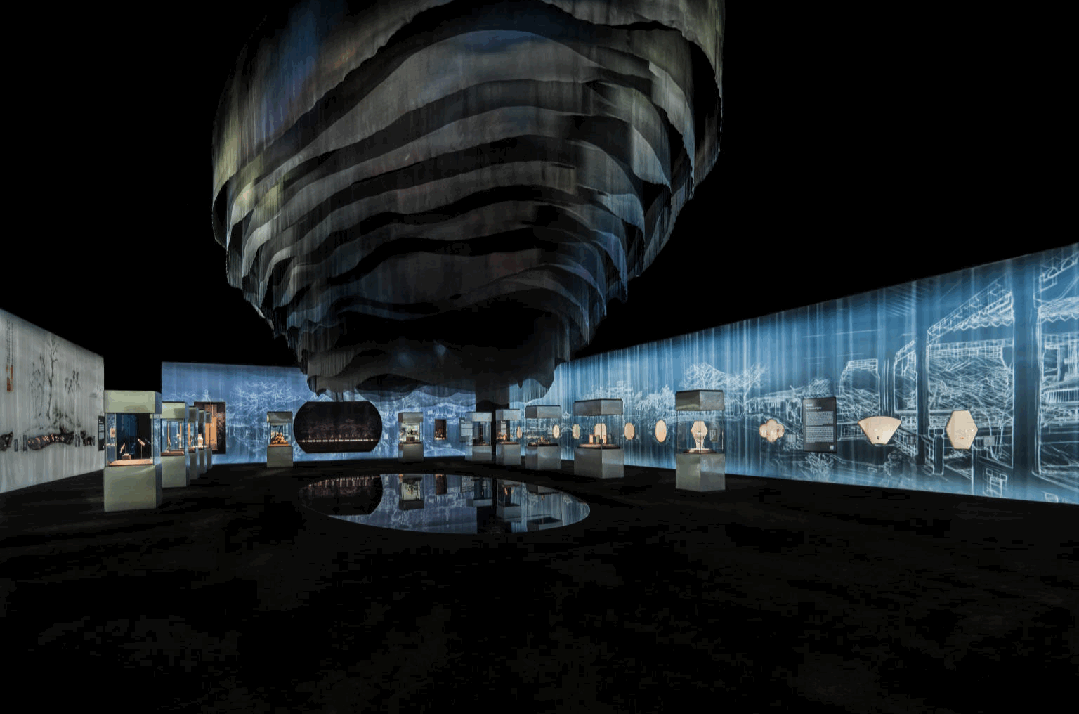 城市的文化地标,是城市气质的缩影。为了缓解观众在特大型博物馆中的观展疲劳问题,建筑改变常见的封闭式流线设计,在流线不同位置设置敞开式的休闲边厅以及室外露台和花园,强调建筑空间与城市空间的交流互动。外立面蜿蜒起伏的曲线,暗合上海这座城市“海陆交汇”的地理位置,也象征“勇立潮头”的精神状态。为增强与观众的交流互动,上博东馆尝试了博物馆新的“打开方式”,在展陈设计上更强调全年龄段、沉浸式、互动式。