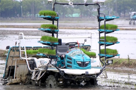“当前,无人农场可通过手机遥控APP控制车辆远程启动、开始作业、停止作业、速度控制和农具控制等,遇复杂地况时可以人工干预,调整作业效果,保障作业安全性。”亭林镇农业农村服务中心副主任徐伟琴介绍,无人农场还包括田间基础设施、农机设备改造、5G信号基建铺设等多个环节建设。目前,亭北村无人农场拥有智能拖拉机6台、智能种植机械6台、智能植保机械4台、智能收割机3台及其它配套类机械设备。