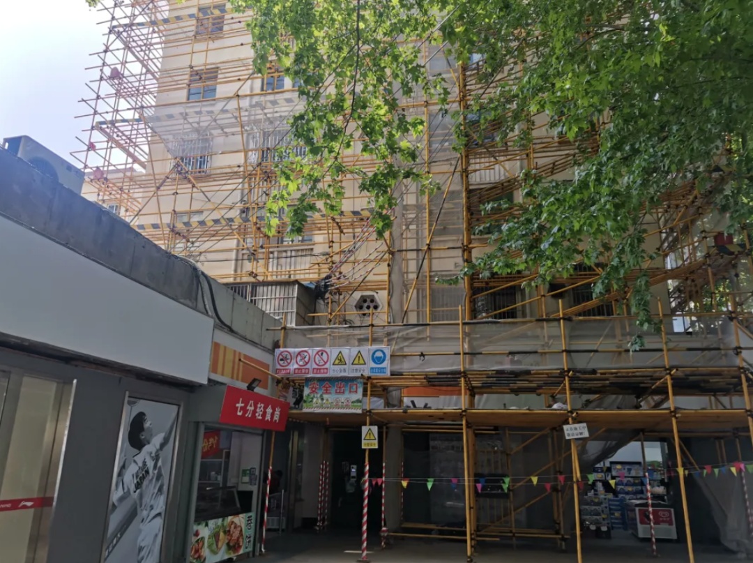 比如,因为“外龙山”空间有限,在施工过程中遇到种种问题,搭建脚手架会搭到旁边小区,施工有时会占用隔壁小区的空间,还有施工噪声、施工堆物等,都会对周围居民带来困扰。为了解决这些问题,居民区党组织与居委会通力合作,一边与周围小区业委会、物业等充分协调,一边监督施工单位文明施工、堆物,及时清理施工场地,争取把相关影响降到最低。通过大量工作后,终于争取到了周边小区居民的理解和支持,一墙之隔的美晶家园甚至腾出了一块空地用于临时堆放“外龙山”施工物料。