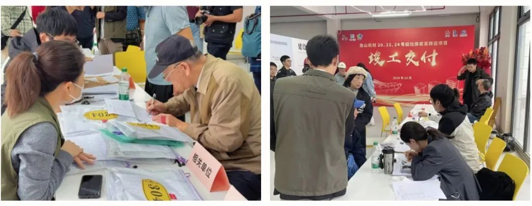 64岁的成先生在龙山新村的“外龙山”住了30年。“外龙山”,指的是龙山新村最外侧20、22、24号这3幢居民楼。2022年1月,“外龙山”旧住房成套改造项目征询最后一位业主签约,实现了意愿征询率和签约率的“双百”。近两年后,居民们来到交付现场,看到曾经的旧居发生了翻天覆地的变化,高兴得合不拢嘴。