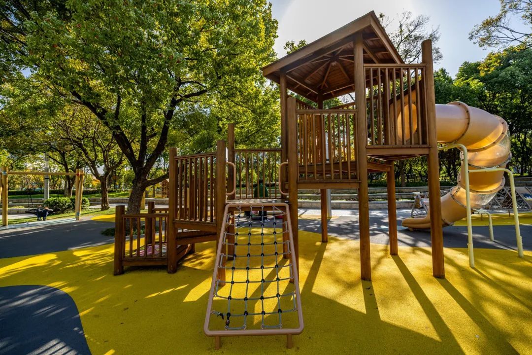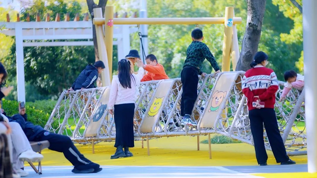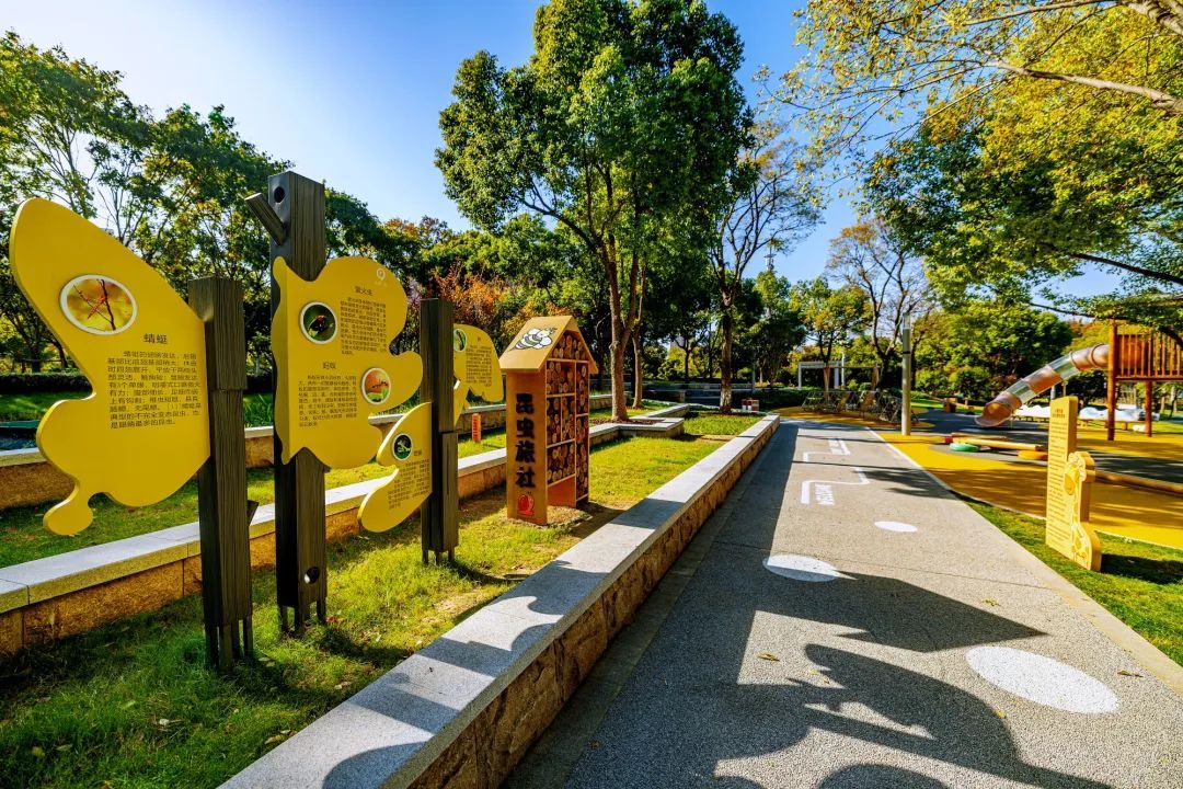 “孩子特别喜欢来这里,能玩耍还能学知识,家长也十分享受。”在太湖广场生态园,暖黄色调的儿童游乐区十分热闹,不仅有滑梯、秋千,一旁的“昆虫旅社”实践基地也将课堂搬到户外,小朋友们乐在其中;