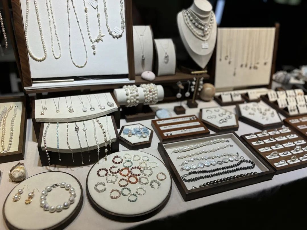 饰品摊位上则摆放着各类精致而独特的项链、手链以及戒指等饰品,它们如同艺术品一般,在灯光的映照下闪烁着光芒。摊主是“A Room万籁生山”的品牌主理人。自从裸辞后,她便全身心地投入到自己热爱的饰品设计事业中,秉持着“给自己,以自我”的理念,设计每一件饰品。这些颇具格调的饰品仿佛有着自己的故事,等待着与佩戴者产生共鸣。