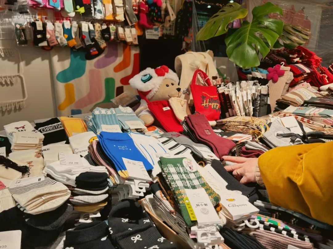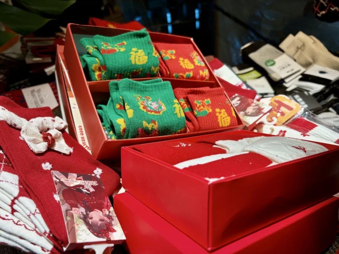 在一个专卖袜子的摊位前,许多人正忙着选购,通过触摸感知袜子的材质与舒适度。摊主来自东北,十分热情地向顾客介绍每一款产品的特点。摊主说,现在这个季节,许多爷爷奶奶会来这里购买保暖的袜子,因为这里看得见、摸得着,价格也相对实惠。现在,摊位已经上新了新春袜子套装,为即将到来的节日增添了一份喜庆与温暖。