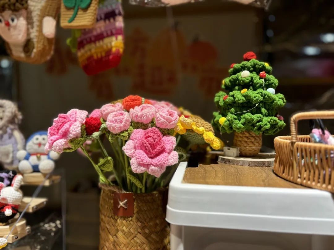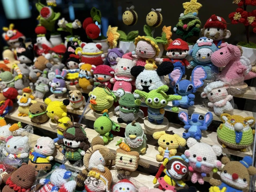 不远处,手作玩偶的摊主总是静静地坐在摊位旁,手中钩针翻飞,一针一线地编织着。“编织一个小巧的玩偶,大约需要两三个小时,大的有时候可能需要一整天。我都是出于喜欢所以做的。”她向记者介绍这些从自己手中诞生的“小小精灵”。而提及不久前被顾客慧眼识中并带走的玩偶摆件,她的脸上不禁洋溢起真挚且愉悦的笑容,眼里是对于作品被认可的满心欢喜。