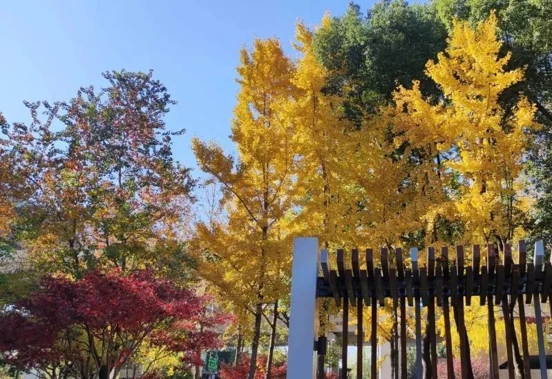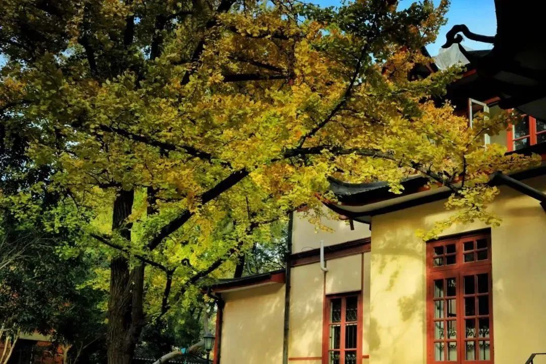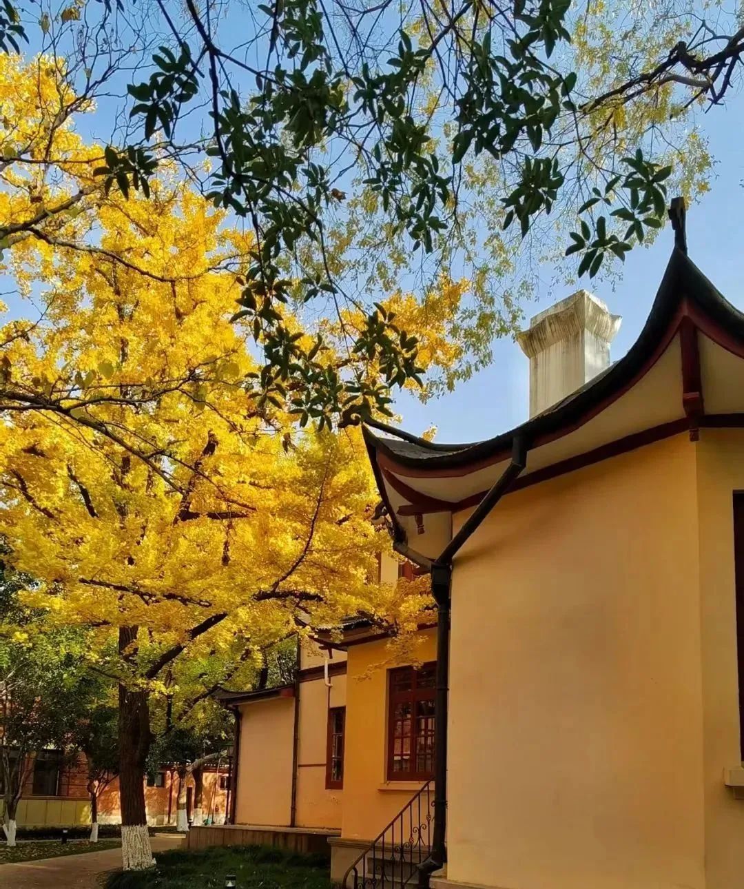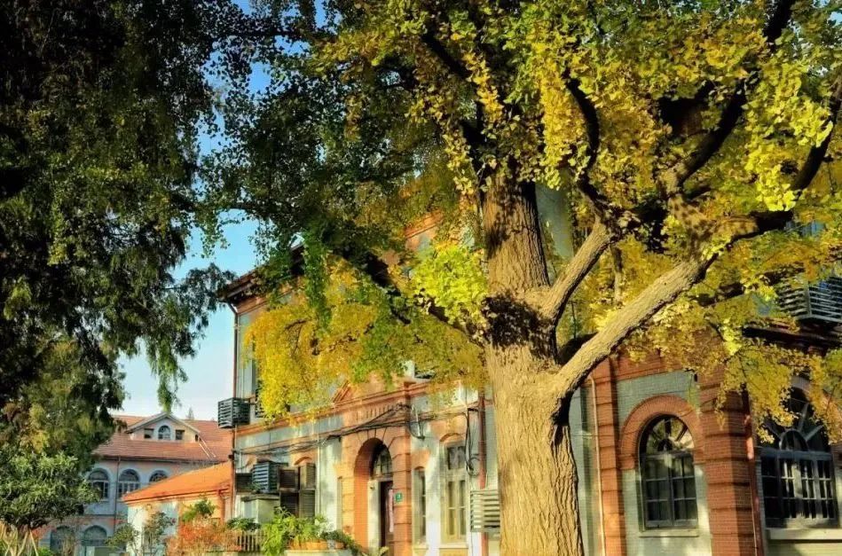 在苏州河华政滨河步道上,矗立着一株超过130年历史的古银杏。当深秋降临,泛黄的枝叶与周围的百年建筑交相辉映,成为了这条步道上不可错过的打卡胜地。此外,隔岸相望的华政长宁校区内散落着的百年银杏树,仿佛也浸润了书卷气息,以一种优雅的姿态,向人们展示着季节更迭的独特景致。