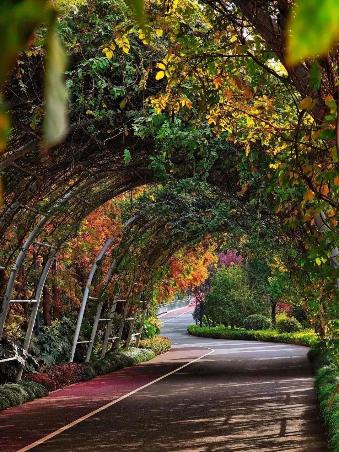 深秋季节,长宁外环生态绿道迎来了一年中最为迷人的季节,成为秋季网红打卡点位的聚集地。绿道内3米宽的银杏路宛如一条金色的绸带,为市民们带来了一场视觉盛宴。密林通幽外环西河西侧乌桕大道、水杉境林等每一处的美景,融合散落一地的斑驳光影,让人沉浸于这绚烂的秋日画卷。