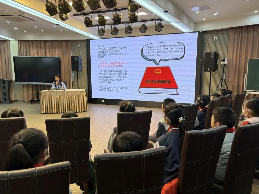 提问交流环节更是高潮迭起,孩子们纷纷举手提问,好奇地探索着法律世界的奥秘。“为什么建国几年后才开始制定第一部宪法?”“为什么今年12月4日是我国的第十一个国家宪法日?”面对孩子们的问题,王律师耐心地一一解答,她的回答不仅满足了孩子们的好奇心,更激发了他们对法治中国建设的自豪感。